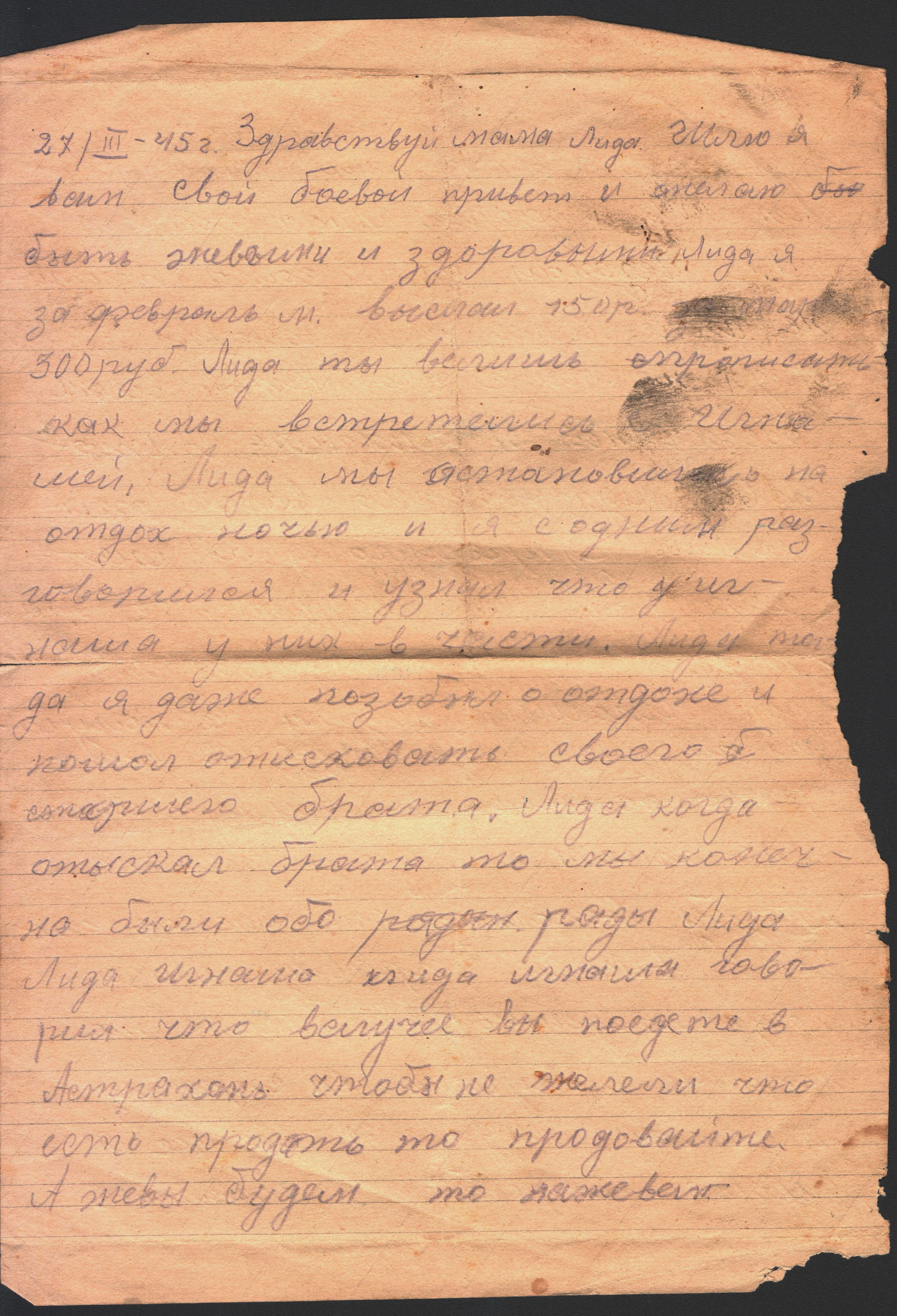 времени они уже переехали туда из Астрахани) из-за учебы Лидии. В сохранившемся письме от 27 марта 1945 года Константин уже не первый раз рассказывает