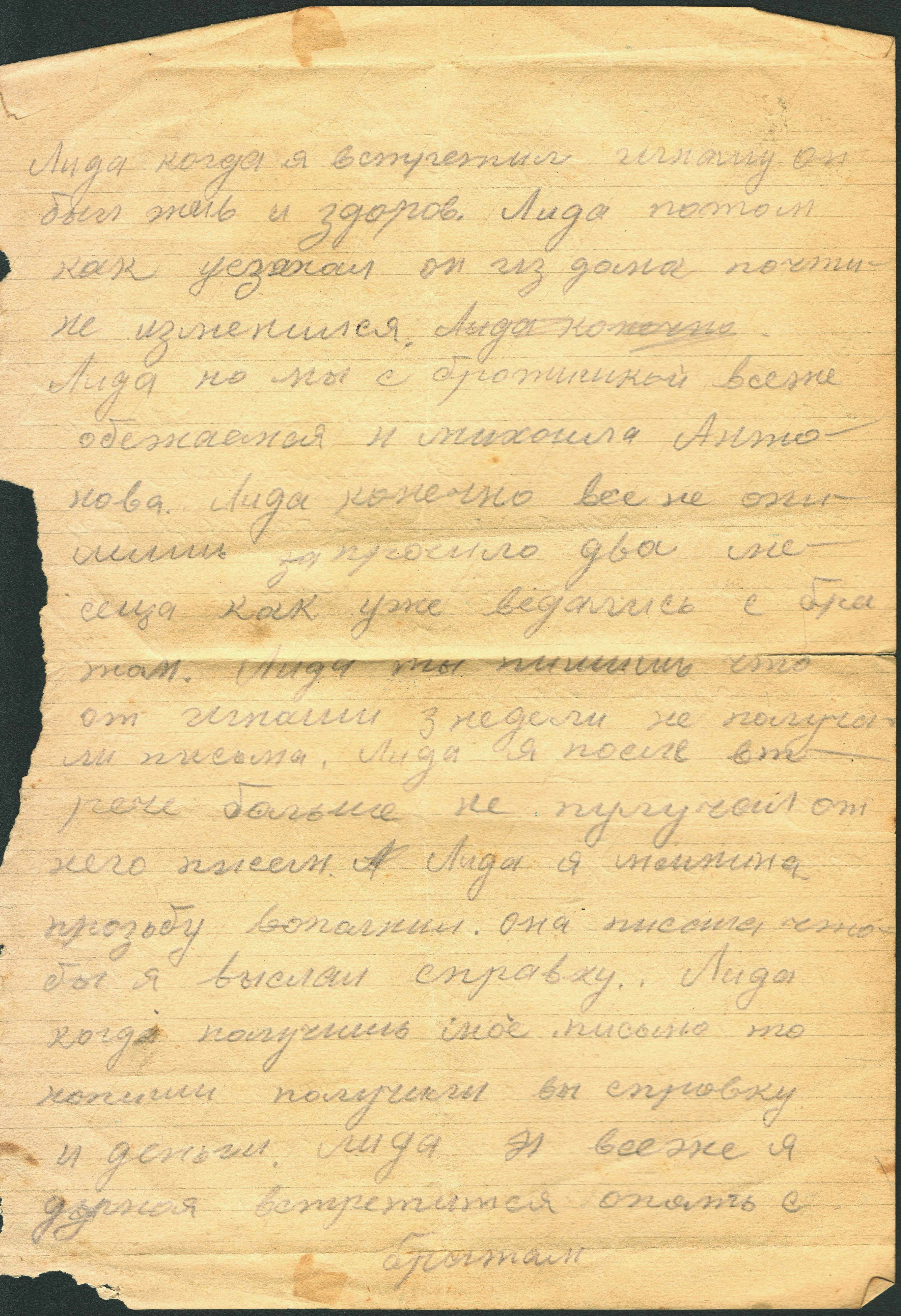 В письмах Игната и Константина упоминается, что они периодически пересылали родным в тыл и даже друг другу фотографии, справки, деньги, посылки. Зная о дефиците бумаги на фронте, Константин, по возможности, старался отправлять брату в своих письмах и чистые листы. Из-за экономии бумаги сохранилось одно из писем Константина брату из Риги. Получив его, Игнат на обратной стороне листа написал своё письмо сестре Лиде и отправил его ей в тыл. Так