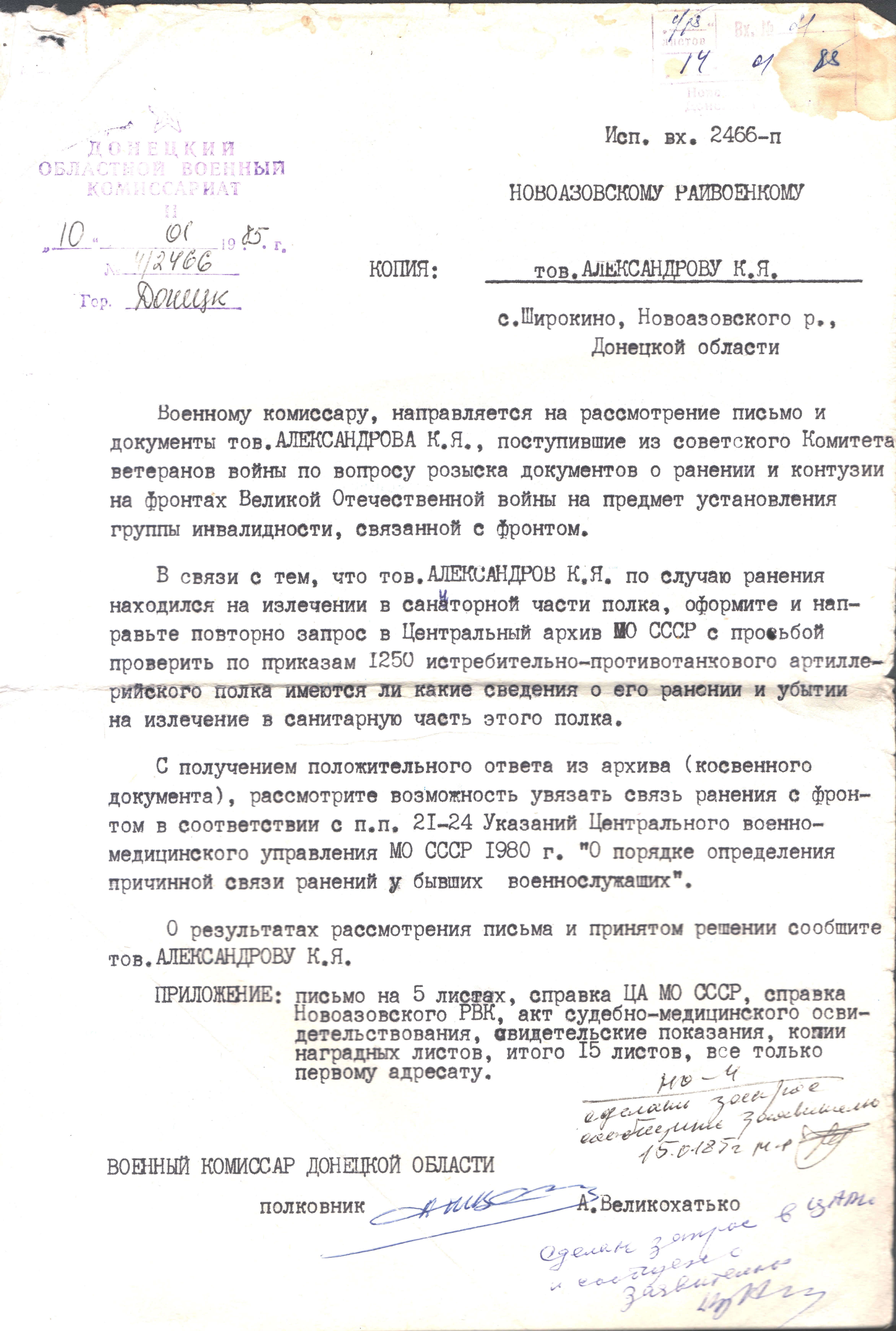 позднее, когда семья получила известия от его сослуживца Сорокина А.К., который