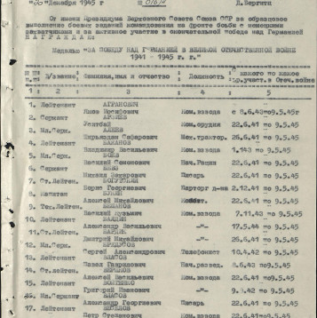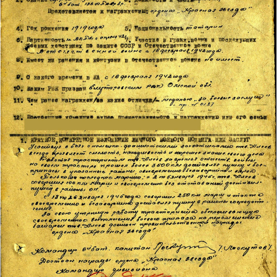 своевременного выполнения боевого приказа на перемещение батареи удостоить правительственной наградой орденом «Красная
