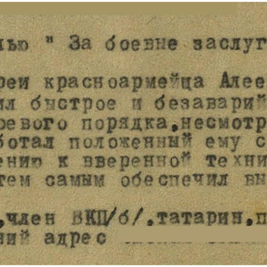 о награждении деда медалью «За боевые заслуги»:«Несмотря на то, что трактор,