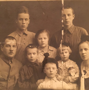Казанское пехотное юнкерское училище закончил в 1908 г. А в следующем 1909 г. женился на Кузнецовой Вере Ивановне. Первый ребёнок в семье – Валентин, родился в 1910 г. в г. Кострома.