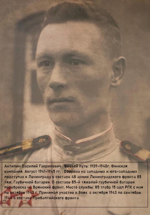 путь: 1939 - 1940 г. Финская кампания (документов не найдено); С 22 июня по август 1941 г. - документов не найдено; Август 1941-1945 гг.: 1. Оборона на западных и юго-западных подступах к Ленинграду в составе 48 ар Ленинградского фронта 85 тяж. Гаубичной батареи и участие боях: - 03.08.41 ст. Медведь. Новгородская обл. - 18.08.41 Вел. Новгород с отступлением к Ленинграду через Мясной бор - 28.08.41 Бои в районе дер. Шапки-Надино - 06.09.41 Бой в районе дер. Назия-Васильково (район Путилово) -07.10.41 Отступление с боями Назия - Мга - Павлово - 21.10.41 г. Бой у дер. Ексолово - 15.02.42 г. Оборона города Ленинграда со стороны г. Пушкин (Московский район. Пулковские высоты) - 15.02.42 Переброска под город Ливны (Орловская область) и участие в боях: - за гор. Миллионный 1.09. 42 г. -Чувакино 25.11. 42. 1. Оборона на западных и юго-западных подступах к Ленинграду в составе 48 армии Ленинградского фронта 85 тяж. Гаубичной батареи и участие боях: - 03.08.41 ст. Медведь. Новгородская обл. - 18.08.41 Вел. Новгород с отступлением к Ленинграду через Мясной бор - 28.08.41 Бои в районе дер. Шапки-Надино - 06.09.41 Бой в районе дер. Назия-Васильково (район Путилово) - 07.10.41 г. Отступление с боями Назия - Мга - Павлово - 21.10.41 г. Бой у дер. Ексолово - 15.02.42 г. Оборона города Ленинграда со стороны г. Пушкин (Московский район, Пулковские высоты) - 15.02.42 Переброска под город Ливны (Орловская область) и участие в боях: - за гор. Миллионный 1.09. 42 г. - Чувакино 25.11. 42. - Моногарово 17.01.43 г. - Русский Брод 16. 02. 43 г. 2. В составе 85-й тяжелой гаубичной артиллерийской батареи переброска на Брянский фронт. Место службы: 85 тгабр 15 адп РГК с мая по октябрь 1943 г.: - с 1.07.43 по 25.07.43 г. участие в боях за с. Покровское и Богодухово - 07.08.43 г. Участие в бое за Холодово - 30.08.43 г. - 23.10.43 г. участие в боях по освобождению Брянской обл. С боями дошел до района Добруш-Гомель 3. С октября 1943 г. по сентябрь 1944 года в составе Прибалтийского фронта принимал участие в боях: - январь 1943 г. за Боровики, Полесье, Сосновый Бор, Светлогорск. - Принимал участие в Гомельско-Речицкой наступательной операции. 10.11-30.11.4 - Бобруйская наступательная операция. 24.6-29.6.44 г. (Операция 5-го удара). Награжден медалью За боевые заслуги. Nº: 6/н от: 22.01.1944 Издан: 85 табр 15 адп РГК Архив: ЦАМО Фонд: 33 Опись: 690155 Ед.хранения: 166 Nº записи: 30641546 4. С 23.07.44 г принимал участие в боях по освобождению Польши, Белоруссии, Восточной Пруссии в составе 85 тгабр 48 А 3-го Белорусского Фронта. - 19.01.1945 г. - награждение Орденом Красной звезды приказом 05/н. (документы и наградной лист в архиве не сохранились) - За участите по уничтожению восточно-прусской группировки противника юго-западнее г. Кенигсберг. 13.3-29.3.45 г. награжден вторым Орденом Красной звезды