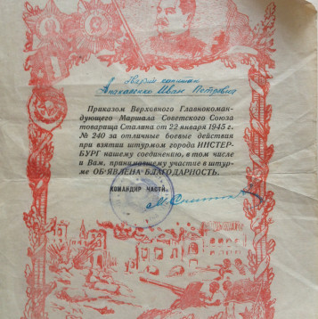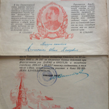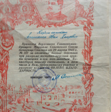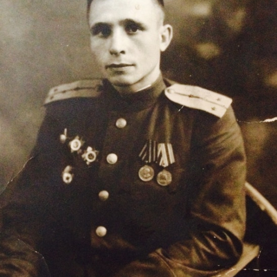 Призывался Суражским РВК в 1938 году. с 26.06.41 по 42 годы воевал на Южном фронте, с 42 по 43 годы на Северо-Кавказском, в дальнейшей и до конца войны на Западном (3м Белорусском) фронте. 1 раз тяжело, трижды легко ранен, каждый раз возвращался в строй. Являясь политруком, первым поднимался в атаку, за отвагу был прозван сослуживцами "Чёрт Петрович". Сбил "Юнкерс" из винтовки. По окончании войны на Европейской территории служил в гарнизоне, г.Дальний, КНР.