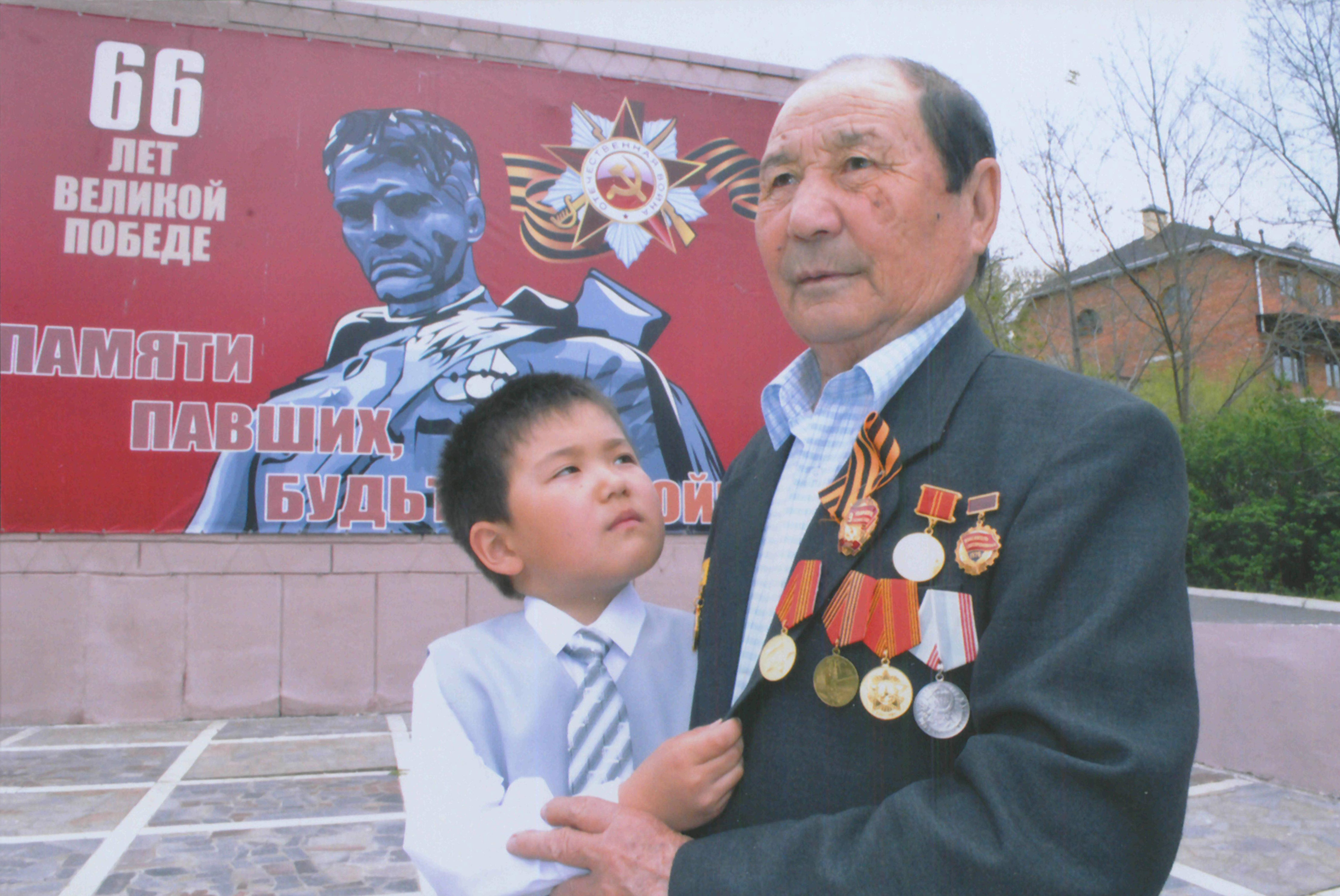 Араев Мугаш Сангаджиевич 1926 года рождения, родился в селе Шамбай Хошеутовского улуса в большой многодетной семье, их было 11 детей. В семье был самым