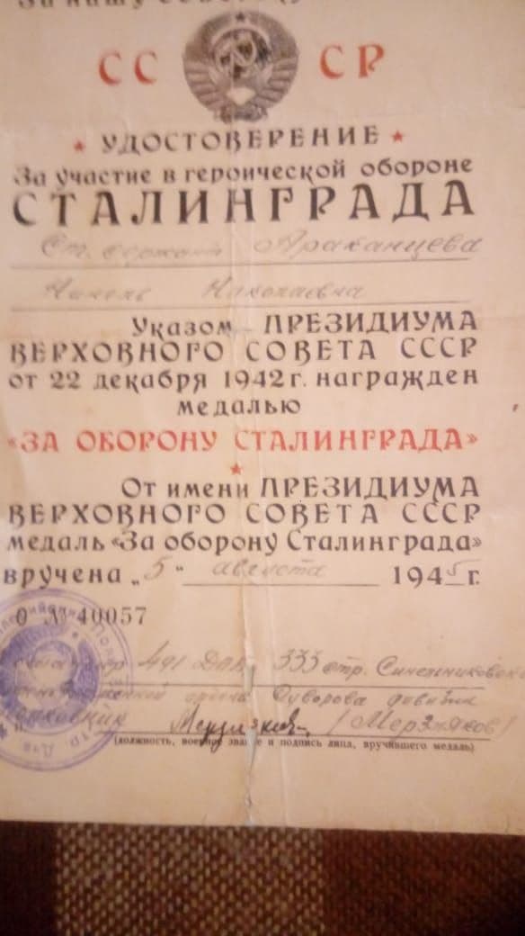 Боевой путь ветерана Призывная комиссия Свищевским райкомом Пензенской обл. 4 декабря 1942 г. Полевая медсестра декабрь - январь. Госпиталь 4199 палатная медсестра 1942 - 1944 г 879 арт. полк Саниструктор, январь 1944 - июль 1945. В Великой Отечественной войне с декабря 1942 года по 9 мая 1945 г.