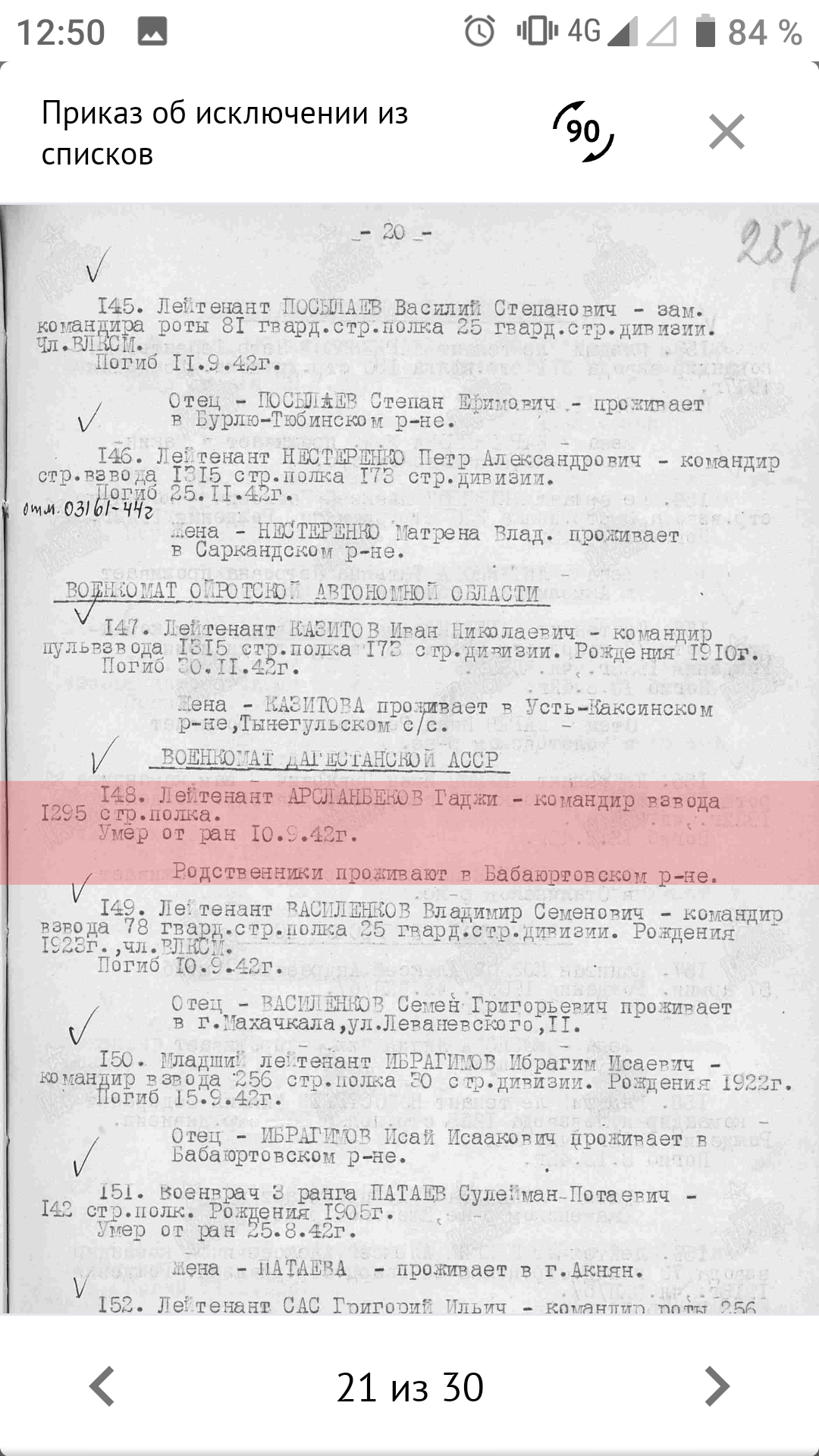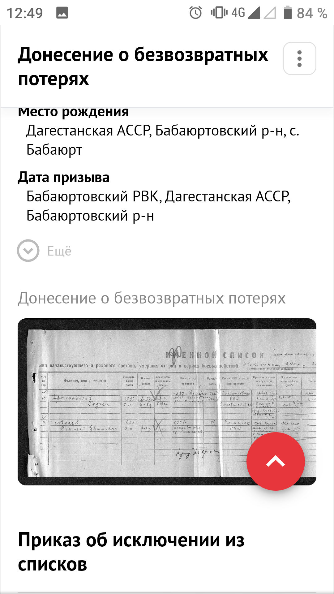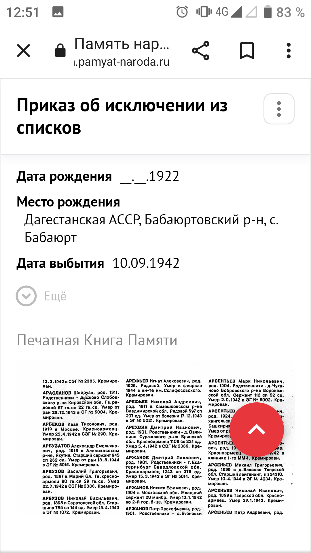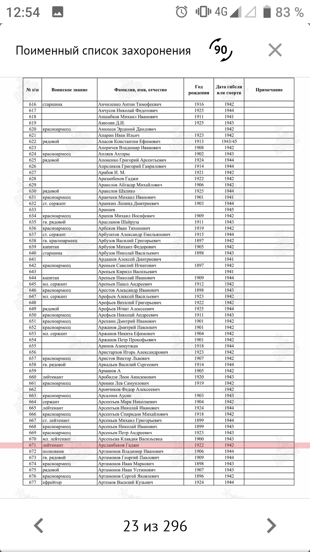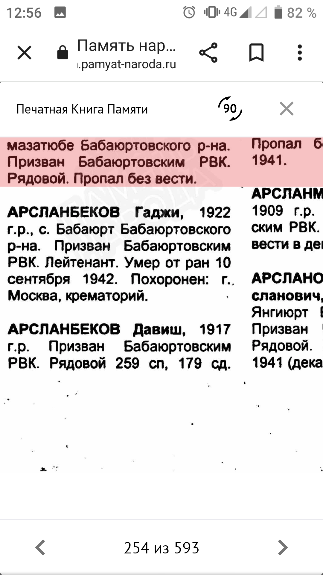 Великая Отечественная война - одно из самых ярких и трагических страниц в истории нашей страны. Массовый героизм советских солдат и обычных граждан приводил врага в замешательство. Немцам были непонятны его причины, истоки. Мы гордимся подвигом нашего народа, передаём историю нашим детям. Эта война оставила незаживающие душевные раны у каждой семьи, так как нет семьи, которой не коснулась эта война. Не прошла война стороной и мимо моих предков. 26 марта 1945 года, освобождая Польшу, погиб смертью храбрых мой прадед, кавалер ордена Ленина Байтемиров Абдулла Джантемирович, пропал без вести его брат Абдулмуталим в первые дни войны в Брестской крепости. Он был среди тех, кто ранним утром 1941 года первыми приняли жестокий удар немецкой армии. Сегодня хочу рассказать о брате моего деда по отцовской линии. Арсланбеков Гаджи Оразалиевич, 1922 года рождения. 18-летним был призван в ряды Красной Армии Бабаюртовским РВК. Он был старшим из детей в семье. Учился в школе села Бабаюрт. За отличную учёбу в виде поощрения в 1937 году был направлен в международный лагерь "Артек", где отдыхал с детьми испанских коммунистов. После школы он закончил финансовый техникум в Харькове. С началом войны был призван в армию и направлен на учёбу в Буйнакское пехотное училище, по окончанию которого попал на фронт в период наступления наших войск, оттесняя врага от Москвы. Воевал он в составе 1295 СП 160 СД 33 Армии Западного фронта во главе с генералом М. Ефремовым. Перед 160 стрелковой дивизией ставилась задача прорвать оборону противника в районе Хотилово и выйти на рубеж восточного берега реки Воря и прочно закрепиться. Ударную группу в операции составили 1293, 1295 и 1297 стрелковые полки. 13 августа они успешно прорвали первый рубеж обороны и заняли деревни Хотилово и Замятино. На второй день продолжили наступление и вышли ко второму рубежу обороны. В последующие дни велись ожесточённые, кровопролитные бои за опорные пункты Павловское, Луково, Игнатьево. Противник упорно оборонялся. В оперативных донесениях по часам описаны боевые действия в этом районе. Бомбили их 10 бомбардировщиков Ю-88. Противник вёл непрерывный пулемётный, миномётный огонь. Очень тяжело давалось наступление. Было много потерь ранеными и убитыми. 15 августа 1942 года тяжело ранило и Гаджи. С диагнозом "Сквозное пулевое ранение правой половины грудной клетки. Открытый пневмоторакс" он был доставлен в эвакогоспиталь в Москве, где 10 сентября 1942 года умер от этого тяжёлого ранения. Было ему 20 лет. Всего лишь 20 лет! Не успел обзавестись семьёй, оставить после себя потомство. В каком духе патриотизма было воспитано его поколение, видно из его последнего письма отцу, написанного 1 августа 1942 года: "Я сейчас командир взвода. При выпуске с училища мне было присвоено звание младший лейтенант. А 26 мая сего года мне присвоили звание лейтенант. Отец, я уже все материалы подготовил перевода меня из кандидата партии в член партии. Так что я в бой вступаю членом партии и защищу свою Родину против немецких оккупантов. Мы отомстим за все муки нашего народа, за все страдания и мучения, которым подвергают немецкие оккупанты наших близких и родных, друзей. Я сын советского народа и вышел из Дагестана, буду драться и бороться не щадя своих сил и самой жизни, чтобы 1942 год стал годом окончательного разгрома немецких оккупантов". Вот такой 