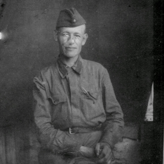 на войну, а его жена Артемьева (Кузьмина) Татьяна Андреевна осталась с маленьким сыном. На фото, присланном с дороги на фронт, Петр