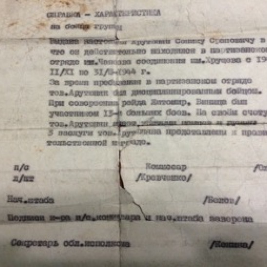 партизанском отряде, пока не освободили Украину от немецко-фашистских