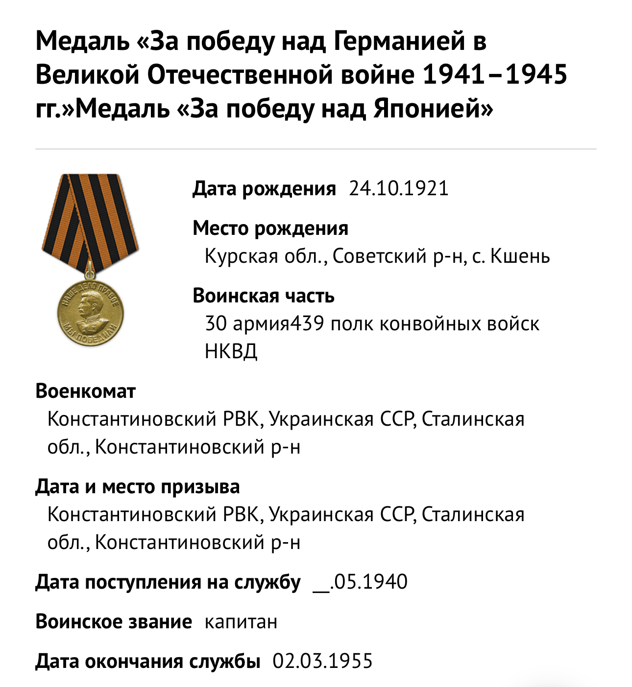 Место рождения: