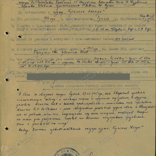 Ивана Константиновича Аверьянова из с. Антипинки на фронт призвали в 1943 году. Воевал он в составе 7-ой армии 38 гвардейской мотострелковой Лозовской Краснознаменной дивизии 115 гвардейского стрелкового полка. Был начальником телефонной станции 1стрелкового батальона. Как свидетельствуют записи в наградных листах, храбро и отважно выполнял свой воинский долг.Свою первую медаль «За боевые заслуги» сержант Аверьянов получил в 1944 году. В период боя за овладение станцией Хотынец под сильным минометным и артиллерийским огнем противника трижды устранял порыв телефонной линии, обеспечивая тем самым связь батальона с ротами. Второй наградой – медалью «3а отвагу» – награжден в январе 1945 года. В боях за овладение населенным пунктом Еверно лично устранил до 20 порывов линии, что повлияло на успешный исход боя.Через два месяца отважный связист И.К.Аверьянов был награжден орденом Красной Звезды. Ордена на войне давали за особые заслуги. Рискуя своей жизнью в боях за овладение городом Гдыня, проявляя максимум энергии, обеспечил КП батальона бесперебойной связью. Неоднократно выходил под огнем немецких снайперов устранять порывы.Приходилось постоянно рисковать, но таков был приказ. И солдат его выполнял. Дважды был ранен. В 1945 году вступил в ряды КПСС. О своих подвигах не рассказывал при жизни. Ветераны той войны вообще в большинстве своем не любили ее вспоминать. Победу Иван Константинович встретил в Польше.После Победы возвратился, как и все выжившие в смертельной схватке, к мирной жизни. Работал в колхозе им. Безрукова. С женой Екатериной Ивановной воспитали пятерых детей. Из жизни ушел в возрасте 67 лет.Судьба человека, жившего в один из самых тяжелых периодов в истории нашей страны, уместилась на одной страничке. Еще проще сказать тремя глаголами: трудился, воевал, растил детей. А если вдуматься, то сколько в этой жизни было подвига, труда и любви к жизни, к своей земле, к семье! Низкий поклон за это от всех, ныне живущих!