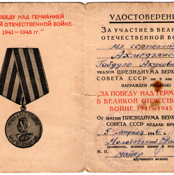 Призвался на службу 6.7.1941 Ждановским РВК г. Уфа. Службу проходил в 269 истребительно - противотанковом полку. Участвовал в освобождении Воронежа, Курской дуге, форсирование Днепра, освобождение Киева и Украины. В 1943 г. был тяжело ранен.