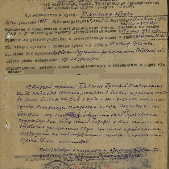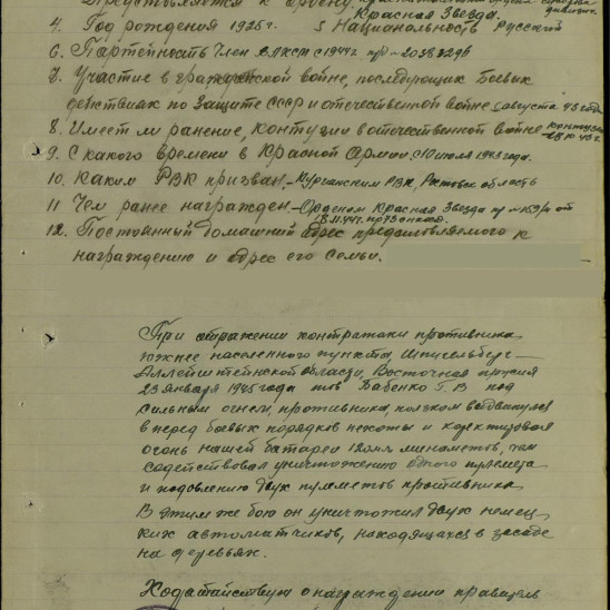 район). Начал войну в 1942 г. в битве под Сталинградом, приписав себе один год,
