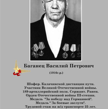 БАГАНЕЦ ВАСИЛИЙ ПЕТРОВИЧ-(1916г.р.) Шофер Калачинской дистанции пути с 14.09.1946года.