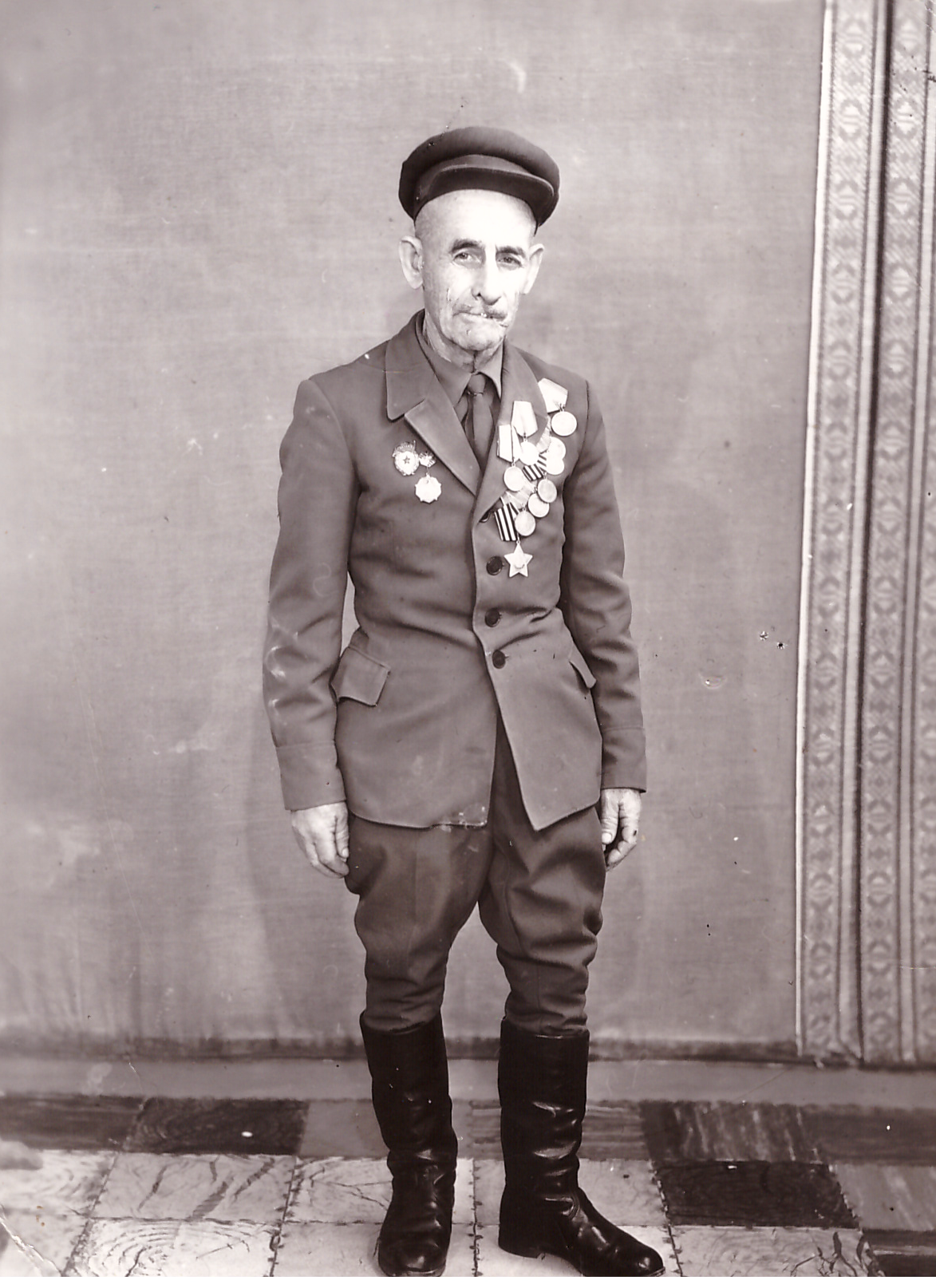 Перед войной проходил службу в армии в кавалерийских войсках.Когда служба подошла к концу наступила война. Был пленен немцами, бежал с пятью солдатами. После плена был восстановлен в войсках и участвовал в битве под Сталинградом. Затем было ранение в грудь и ногу, госпиталь. После госпиталя участвовал в сражении на курской дуге. После второго ранения в лицо был отправлен в госпиталь в г.Саранск, в военных действиях больше не участвовал по состоянию здоровья. В городе Рузаевка сопровождал военные эшелоны на железной дороге. На родину домой на него пришло две похоронки. Его считался погибшим. Сразу на родину не вернулся из-за депортации чеченцев из Чечено- Ингушской АССР в 1944году, себя называл грузином а не чеченцем. И только после войны вернулся на родину.