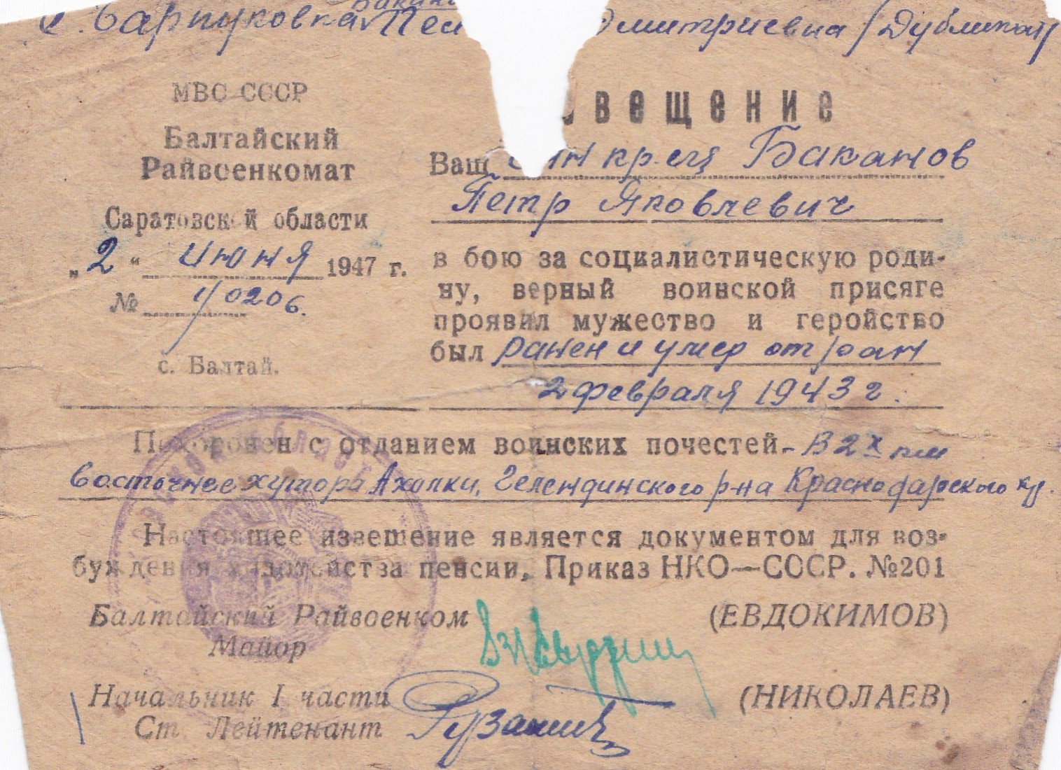 место смерти: Краснодарский край Крымский район х. Ахонк