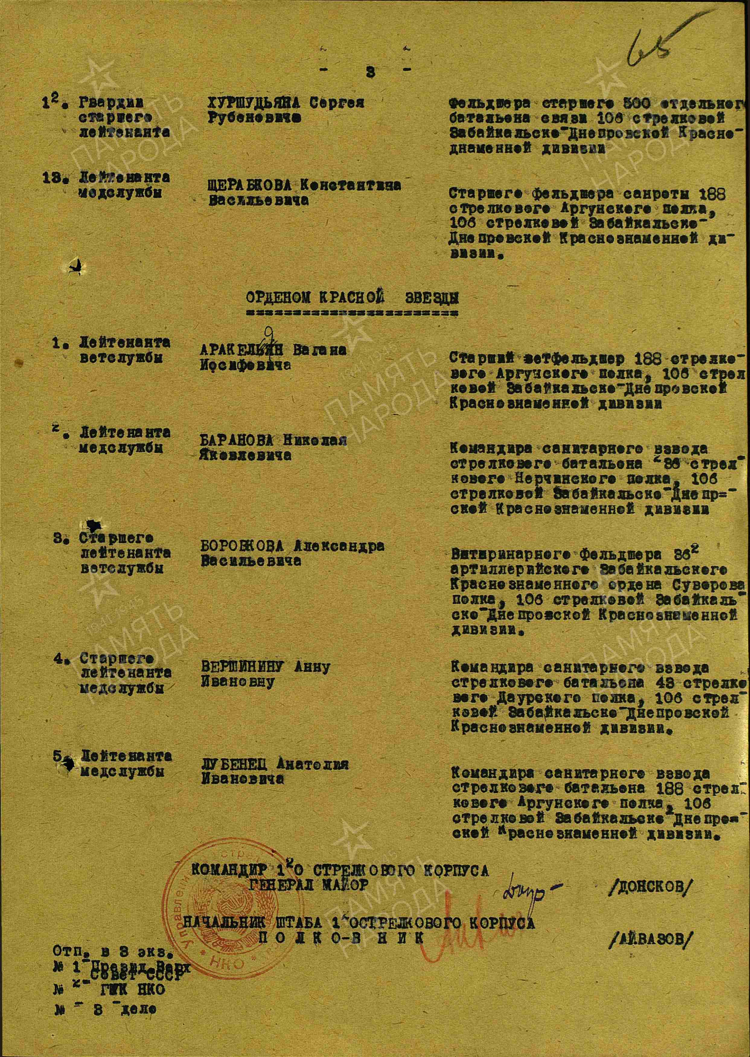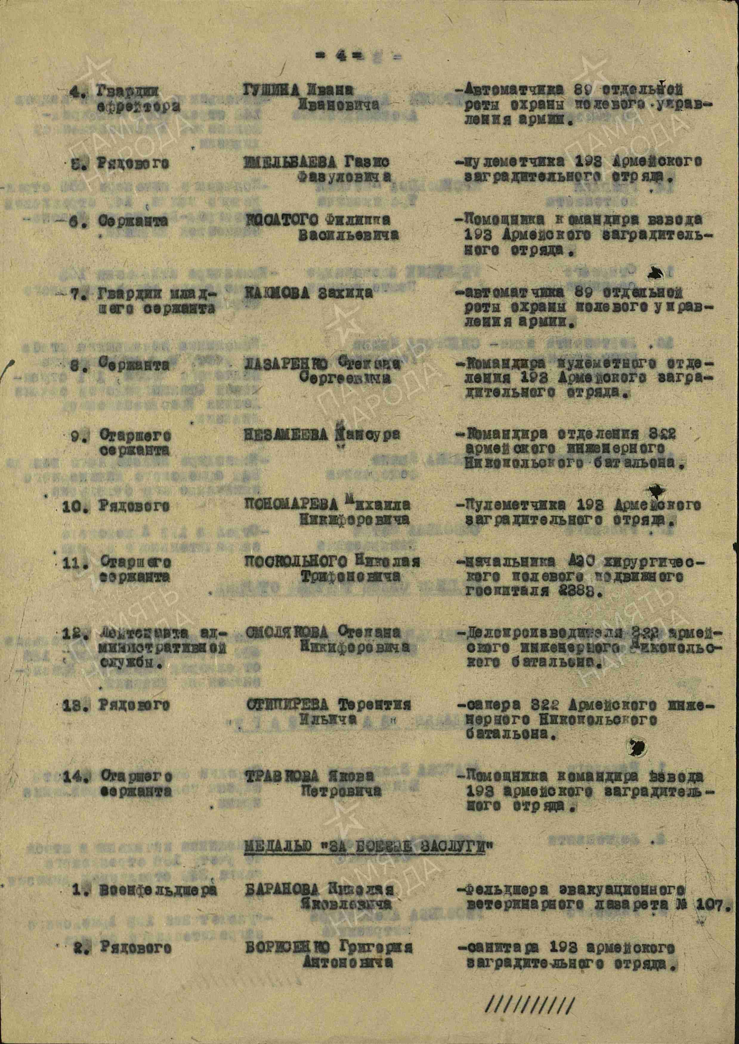 Военфельдшер | лейтенант медслужбы | гв. лейтенант 256 стрелковая бригада ЭВЛ 107 3 гв. А 236 стрелковый полк 106 стрелковой дивизии (II) Дата окончания службы: 10.12.1946