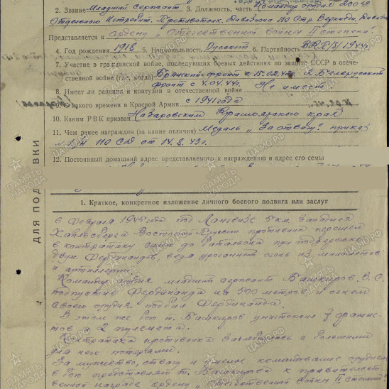 Я , дочь Василия Семеновича Башкирова - уроженца с. Ельник, Красноярского края, родилась в 1949г. Отца помню по фрагментам детской памяти, но очень хорошо по воспоминаниям бабушки Башкировой ( Чекменевой ) Феклы Дмитриены. Папа родился в семье Башкирова Семена Ивановича , где было 5 дочек и один сын , вторым после старшей сестры Раисы Семеновны.