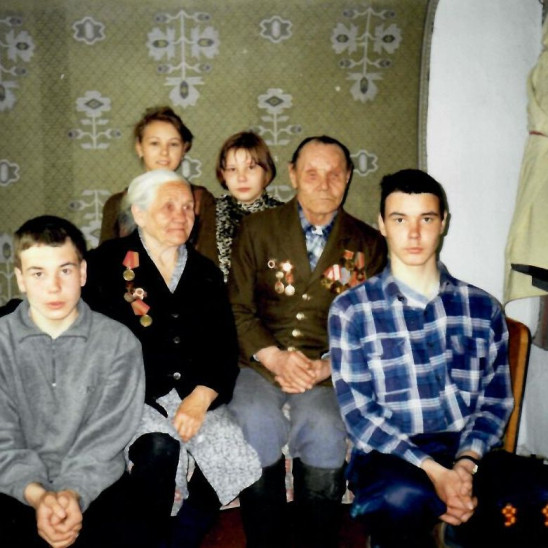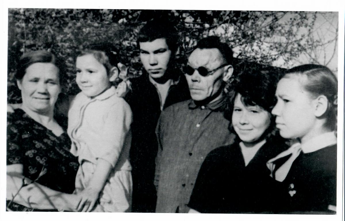 Моя мама была призвана в РККА 5апреля 1942 года. Воевала в составе IIIУкраинского фронта во 2-м отдельном тяжёлом понтонно-мостовом полку. На фронте познакомилась с папой. Это наша семья в мае 1965 года накануне Дня Победы. Снимок был помещён в областной газете "Биробиджанская звезда". Мама с папой воевали в одном зенитном расчёте; папа - командир расчёта, мама - наводчик. Они освобождали Украину, участвовали в Ясско-Кишинёвской наступательной операции. 28 августа 1944 года папа был тяжело ранен. В 1945 году родители поженились. Вместе прожили 55 лет. У меня две сестры и брат, а у родителей было восемь внуков и четыре правнука. Хотя их давно нет с нами, мы всегда помним о них, гордимся ими., а День Победы для нас - торжественный праздник, исполненный благодарности и признательности не только к нашим родителям, но и ко всему их героическому поколению.