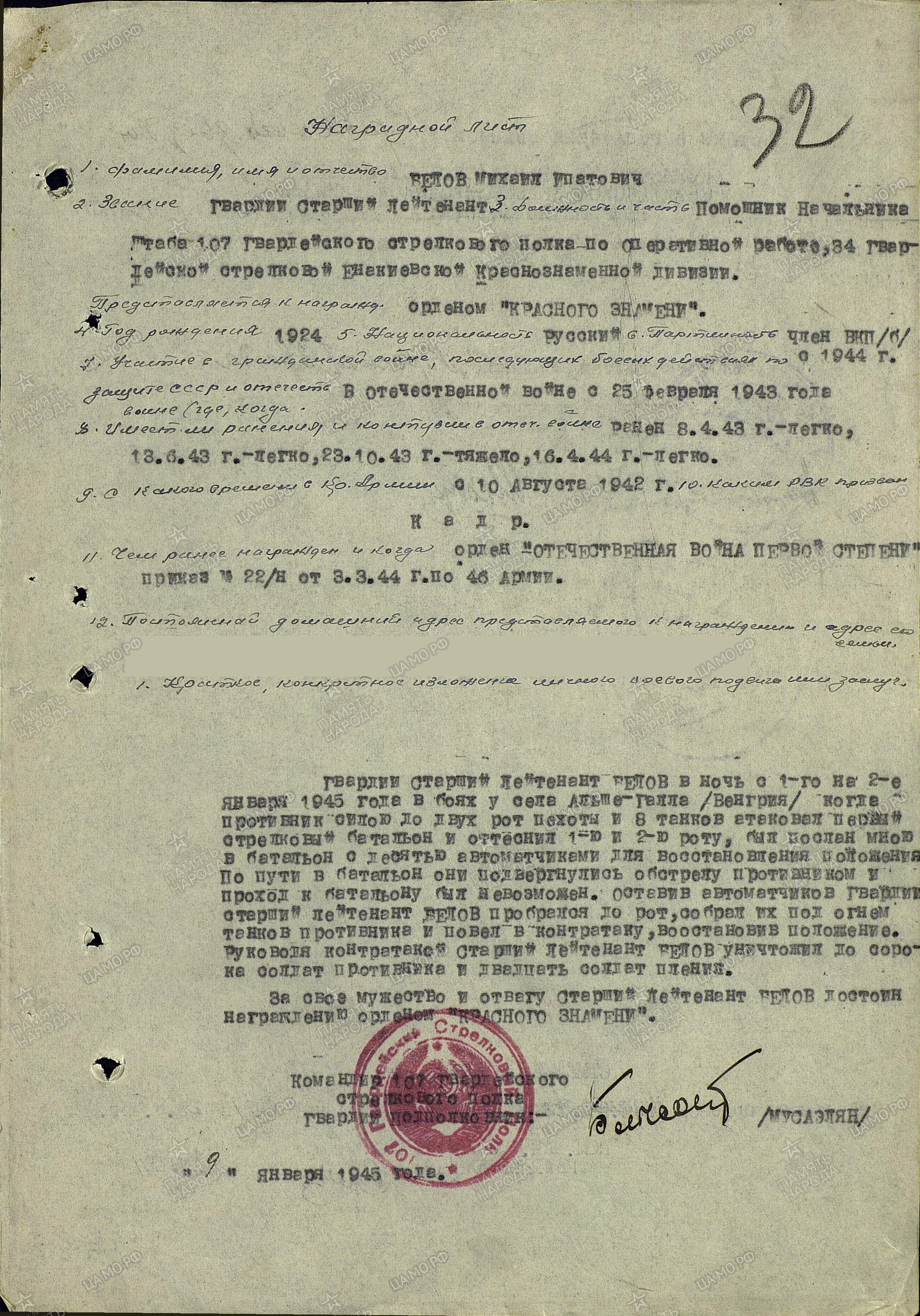 преобразованного в 34-ю гвардейскую стрелковую дивизию, в её 107-м гвардейском