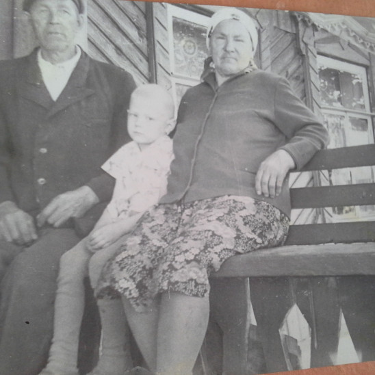 На фото дедушка со своей семьей , 9 мая 1950 года и и в середине 70-х годов с младшим внуком и нашей бабушкой. На третьем фото шествие Бессмертного полка в г. Димитровграде Ульяновской области., 2016 год.