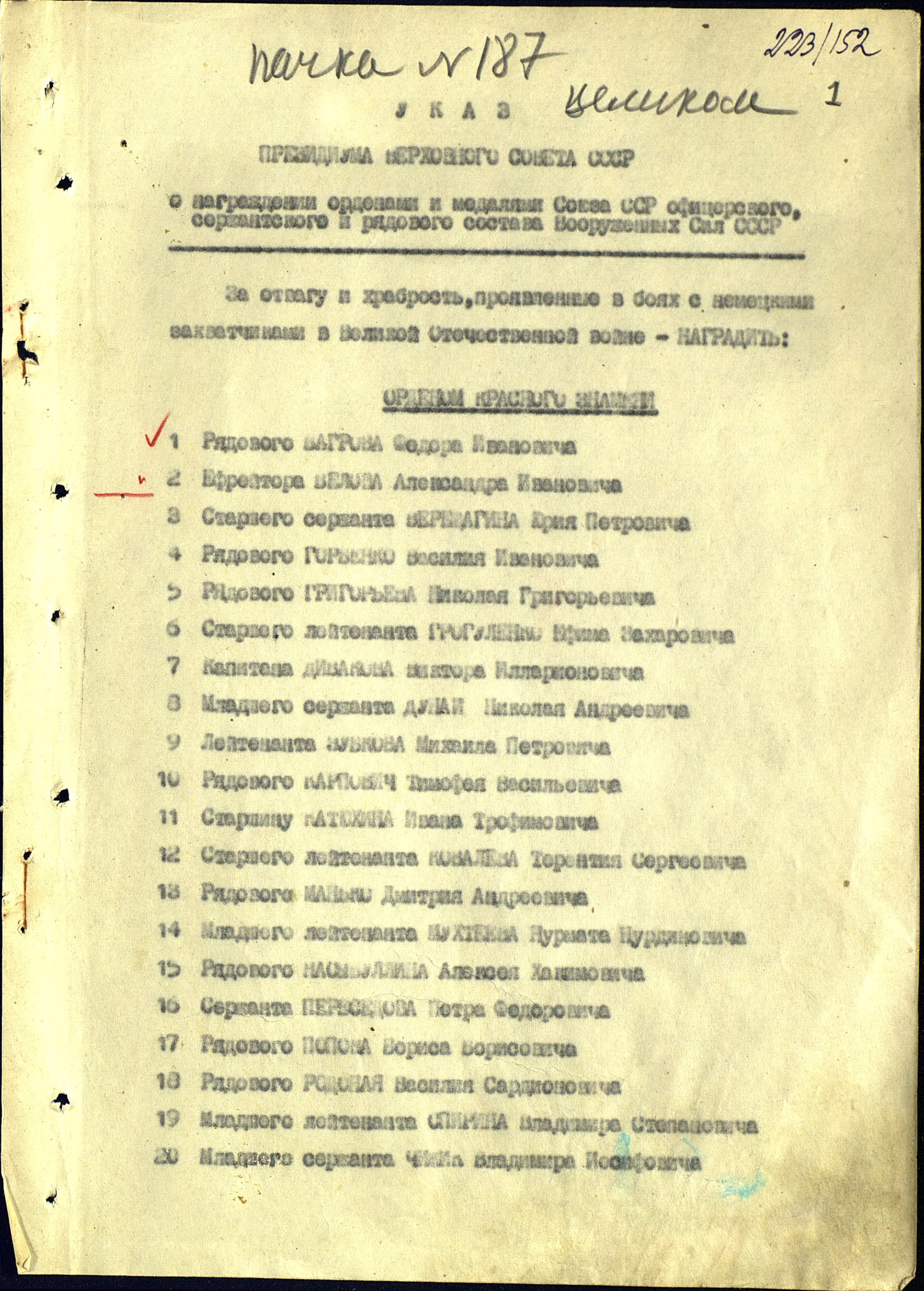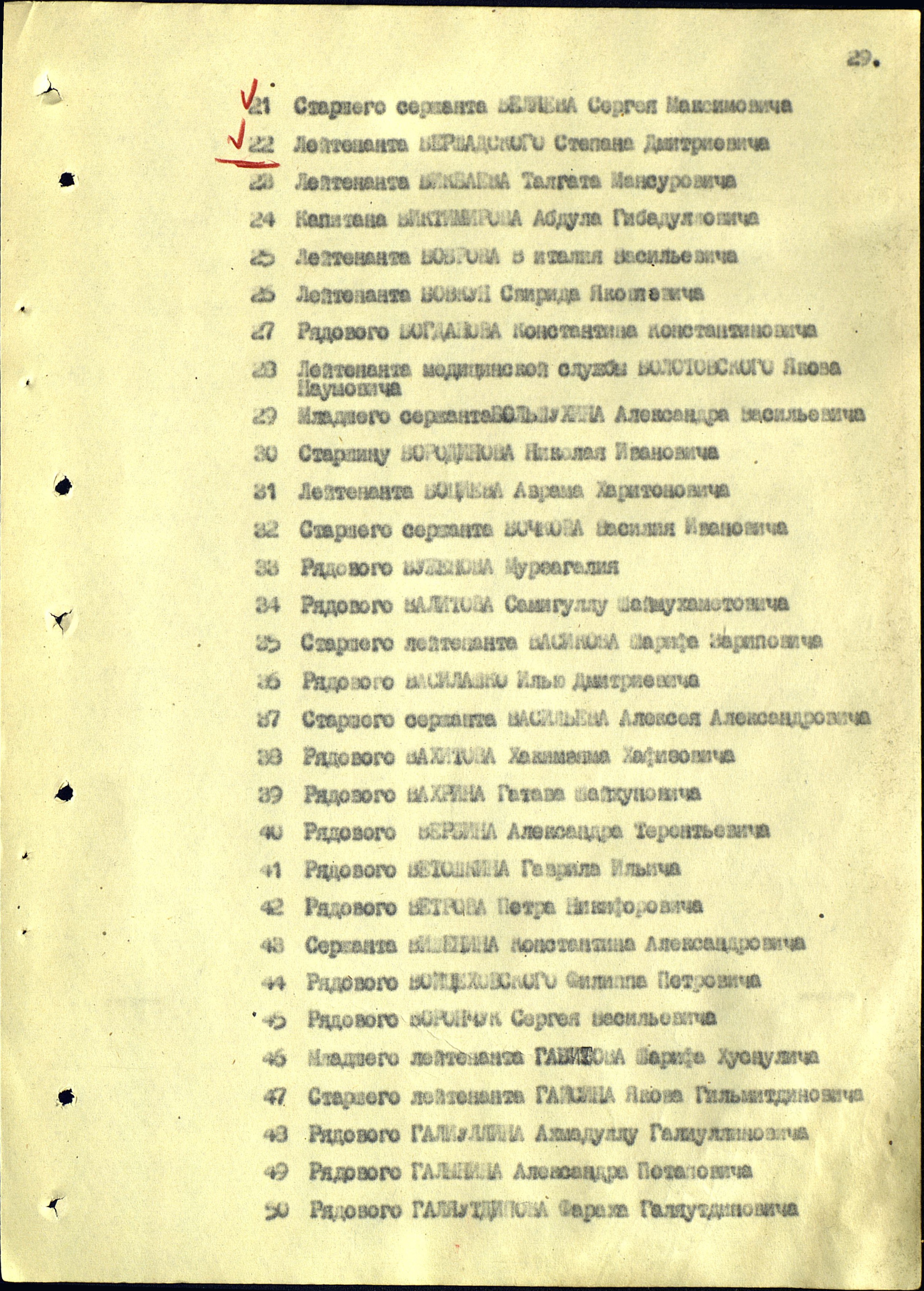 Действуя в составе взвода под г. Таганрог при наступлении на укрепленный пункт Санбек, уничтожил более 50 человек немецких солдат и офицеров.