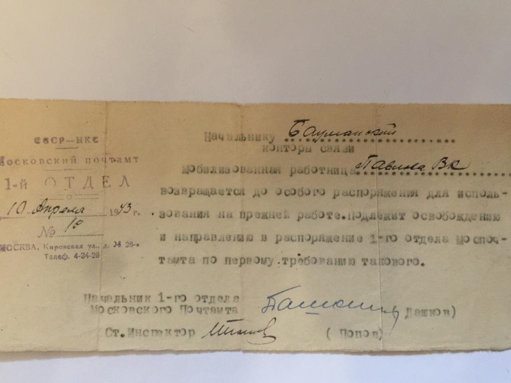 Блинкова (Павлова) Варвара Константиновна родилась 31 октября 1921 года в городе Переславль-Залесском Ярославской области. После переезда родителей в Москву проживала в Сыромятниках, что у курского вокзала. Пошла учиться в семилетнюю школу № 400. которую окончила в 1939 году. С сентября 1939 года В.К. Блинкова (Павлова) почтовый служащий 5-ого отделения Бауманской конторы связи НКС СССР и до 1943 года как военнообязанный находилась на брони. Участвовала в мероприятиях трудового фронта. С первых дней войны в составе унитарных команд, сформированных из гражданского населения, принимала участие во всех мероприятиях трудового фронта: дежурства в госпиталях, ночные и дневные дежурства на крышах жилых домов для своевременного гашения зажигательных бомб, и в строительстве оборонительных рубежей на подступах к Москве осенью 1941 года. Непосредственно в районе бывшей деревни «Нижние Котлы» на юге Москвы. По приказу 1 отдела Моспочтамта от 10 апреля 1943 года 1с (прилагается) была возвращена с трудового фронта на рабочее место. С 5 мая 1943 года Блинкова (Павлова) В.К. была мобилизована по приказу первого отдела Моспочтамта от 04.05.1943 г.№ 1с (прилагается) в Рабоче-Крестьянскую Красную армию, в войска связи по своей гражданской специальности. Службу проходила в следующих военных частях: Военно-почтовый сортировочный пункт № 13 (ВПСП 13) в то время формировался в городе Горьком (Нижний Новгород). В 1944 году Блинкова (Павлова) В.К. была направлена в действующую армию, в ВПСП № 40 (в/ч 56933) Первой армии Войска польского 1 Белорусского фронта (2 формирования). В составе фронта освобождала Украину, Белоруссию, Польшу, дошла до Берлина. На территории Украины принимала участие в боестолкновениях с формированиями украинских националистов (бендеровцев), которые "шарились" по тылам действующей армии и нападали на узлы связи и полевой почты. Демобилизовалась несколько месяцев спустя после долгожданной Победы 24.09.1945 г. в звании сержанта войск связи, польское воинское звание - взводный, аналог старшего сержанта в Красной армии. В.К. Блинкова (Павлова) награждена орденом Великой Отечественной войны II степени, боевыми медалями: «За Освобождение Варшавы», «За взятие Берлина», «За Победу над Германией», «За доблестный труд в Великой Отечественной войне 1941-1945 гг.», польской наградой воинской доблести «Бронзовый Крест Заслуги» (прилагается). Имеет ряд юбилейных и памятных наград. С 1 февраля 1946 года Блинкова (Павлова) В.К. сотрудник НКПС СССР, затем МПС СССР, МПС РСФСР, МПС Российской Федерации, ОАО «РЖД». Почетный железнодорожник (1990), почетный ветеран железнодорожного транспорта (2006), почетный член Совета ветеранов аппарата управления ОАО «РЖД» (20116). Решением Российского государственного военного историко-культурного центра при Правительстве Российской Федерации (Росвоенцентра) от 30 марта 2013 года Б-10021 В.К. Блинковой (Павловой) присвоено звание «Патриот России». С будущим мужем Блинковым Григорием Васильевичем познакомилась, работая в МПС СССР, вышла за него замуж, создала семью, родила сына Александра. Варвара Константиновна воспитала двух железнодорожников: сына Александра и внука Андрея, которые продолжили железнодорожную династию Блинковых. Блинкова (Павлова) Варвара Константиновна умерла на 100-м году жизни 18 декабря 2020 года. Похоронена в городе Москва на Николо-Архангельском