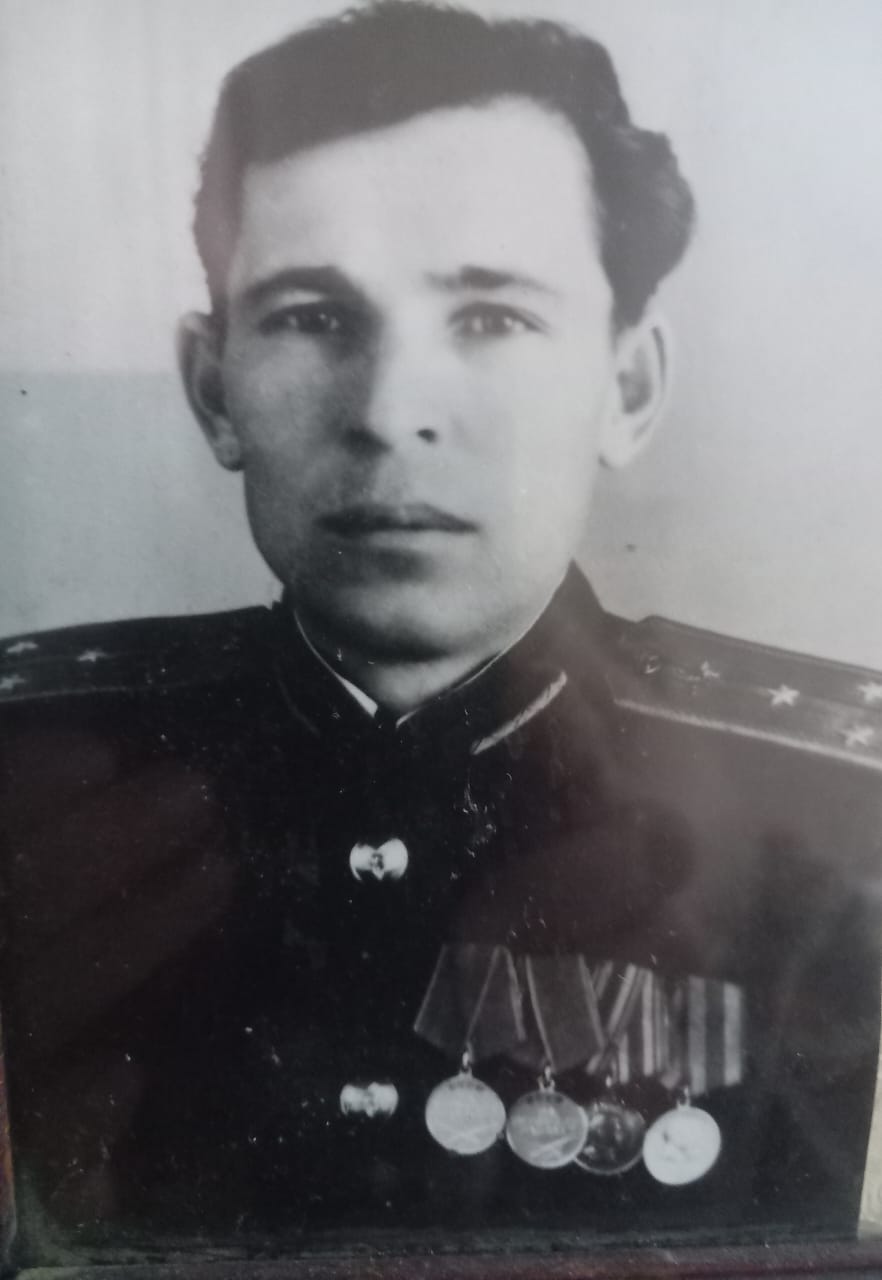 Участвовал в войне с Японией с 9 марта по 3 сентября 1945 г. в составе 40 батальона связи 3 СД, Лейтенант командир штабного взвода. Награждён орденом- Красной Звезды, двумя медалями - За боевые заслуги, и За Победу над Японией. Тремя юбилейными . Образование 9 классов .Работал завхозом в стройтресте, Умер в 1978 г. Записан в книге- солдаты Победы 1941-1945 РФ Амурской обл. 2003г. том 2