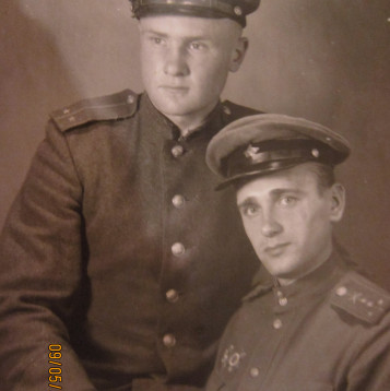 В 19 лет моего батю отправили в Фергану, где находилось Харьковское артиллерийское училище. Размещалось оно в старых скобелевских казармах. По окончании училища молодого лейтенанта направили в артиллерийский полк на конной тяге. Закончилась Сталинградская битва и фронт расформировали, а их перебросили на север. Наступило очень тяжелое время-они оторвались от тылов и еды ни коням, ни людям не было, а получив приказ на передислокацию погрузили свои гаубицы на сани и попробовали двинуться, а изголодавшие лошади, обычная упряжка из трех пар лошадей не в силах сдвинуть тяжелую гаубицу! Припрягали и обозных лошадей и сами впрягались, чтобы помочь обессиленным лошадям.