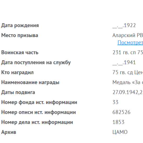 г. Орша, Белоруссия, призван Аларским РВК г. Кутулик Иркутской обл.