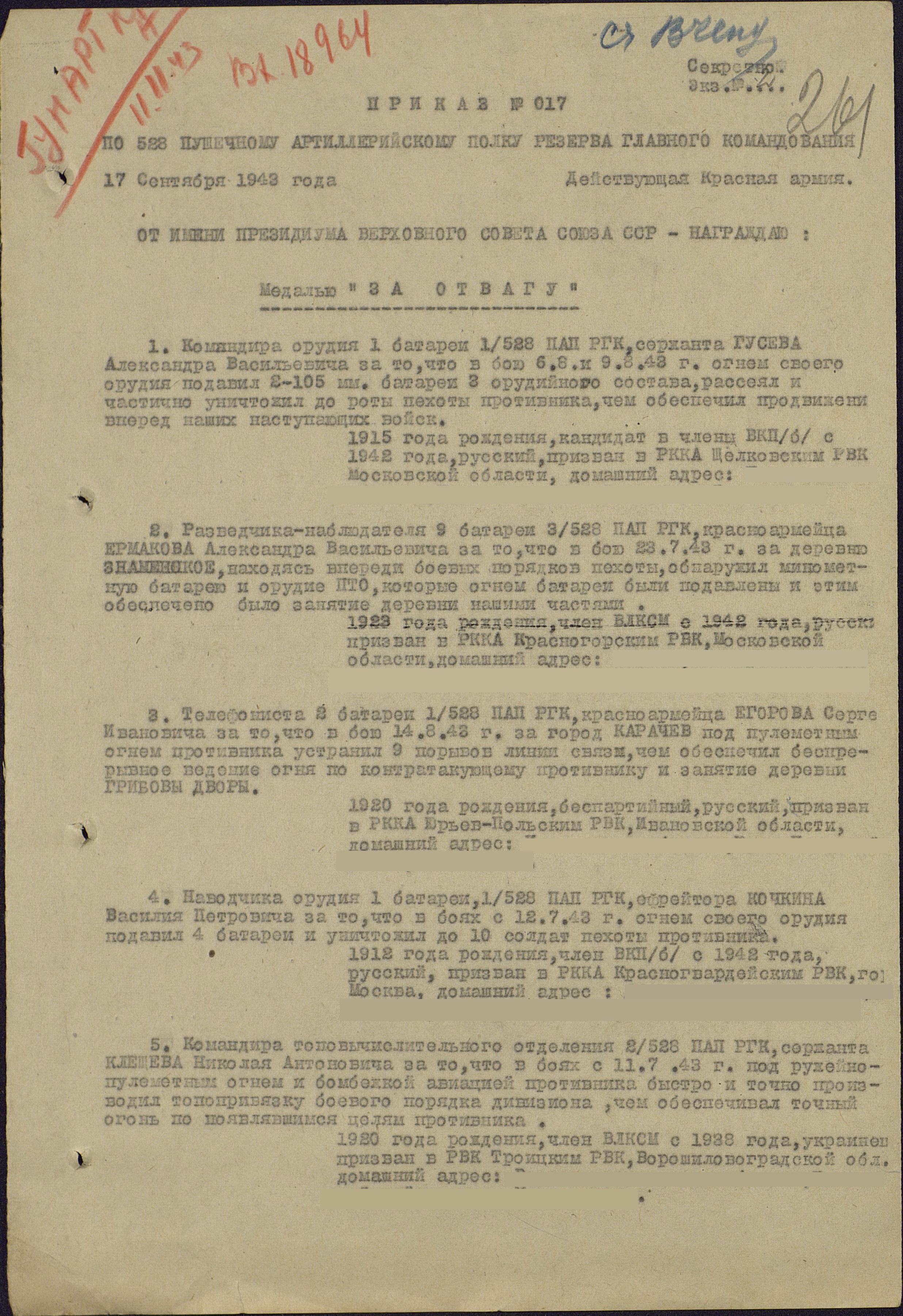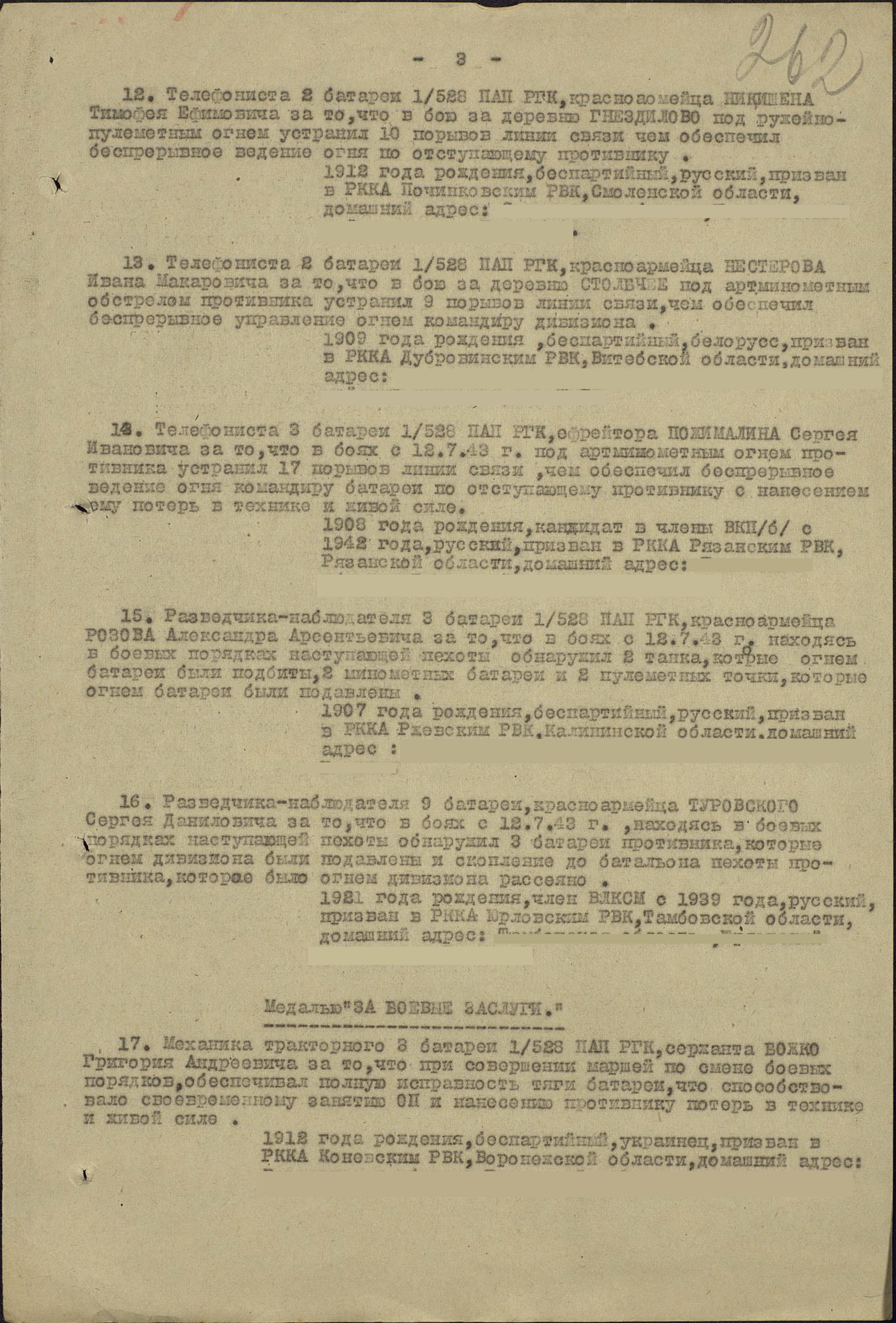 Место рождения: Воронежская обл., Радченский р-н, с. Дяченкова