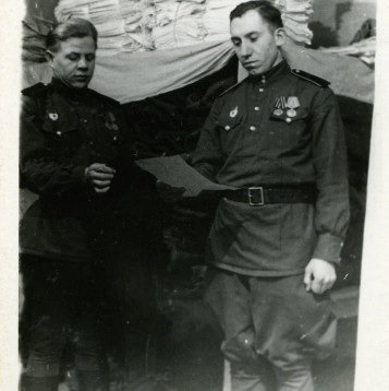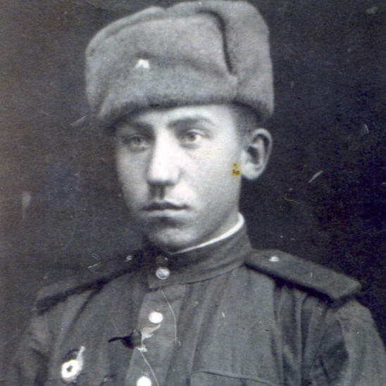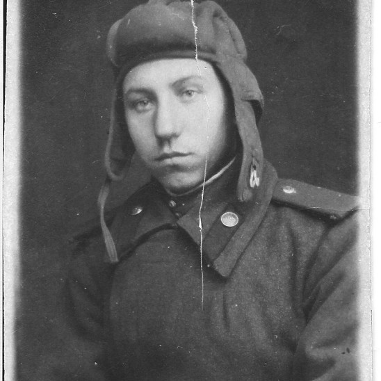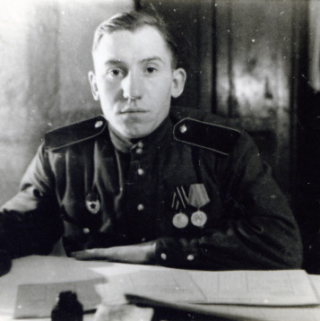 В декабре 1943 года в возрасте 18 лет забрали его в армию в 289 запасной стрелковый полк (этот полк входил в 43 запасную стрелковую бригаду) с дислокацией в г. Боготоле , готовили его снайпером. В июле 1944 г. отправили на фронт под город Тульчин Винницкой области Украинской ССР автоматчиком в/ч 31695 8 гвардейской танковой бригады ( в составе 20 танкового корпуса ). С ноября 1944 г. по декабрь 1946 г. отец был писарем при штабе (у него был удивительно красивый почерк). В марте 1945 года 20-й танковый корпус, находившийся в резерве войск Ставки ВГК, передислоцировался и сосредоточился в районе Раудтен -Дорнбруш (Германия). В апреле-мае 1945г. Войсками корпуса выполнялась боевая задача по уничтожению войск противника в районе города Глогау (Германия, ныне - Глогув, Польша) и ликвидации прорыва немецких войск к городу Бреслау (Германия, ныне - Вроцлав, Польша). В июне 1945г. войска 20-го танкового корпуса вошли в состав гарнизона города Бреслау, где отец еще 5 лет прослужил в этой же части (кладовщиком и зав. складом ОВС).