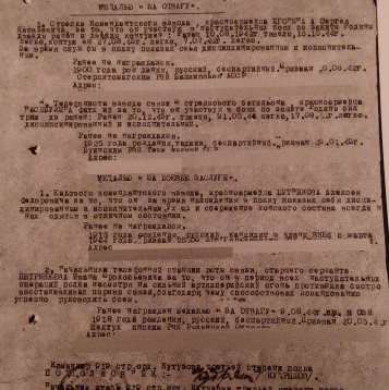 боевые заслуги» и «Медалью за взятие Кенигсберга». В