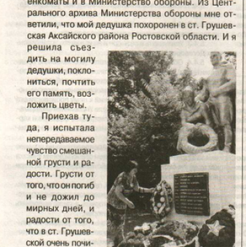 место смерти: с. Грушевка Аксайского района Ростовской области