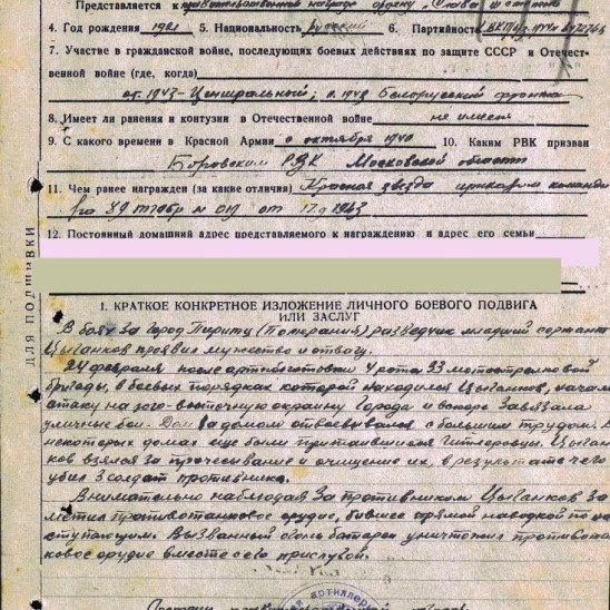 ТГАКБ поковником Сазоновым: "В боях за Берлин младший сержант Цыганков