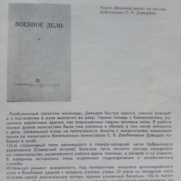 « - Ту страшную ночь, когда началась война, невозможно описать, – рассказывала в письме Ангелина Иосифовна. – Мы ещё не успели уснуть, когда фашисты начали бомбить крепость… Петр моментально побежал в штаб полка. На своём участке они с комиссаром Дербеневым организовали оборону. Сражался Петр горячо, мужественно, имея только личное оружие… Днём его ранило в плечо. Сделали перевязку, и он опять с ещё большей ненавистью громил фашистов… Вторично Петра ранило к концу дня, тяжело. Когда я до него добралась, он был мертв». В письме А.И. Давыдова рассказала и о своей судьбе.