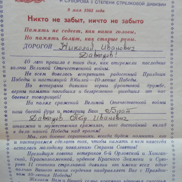 Младший брат Пётра - Давыдов Николай Иванович - мой дедушка, который всю жизнь посвятил поиску брата.