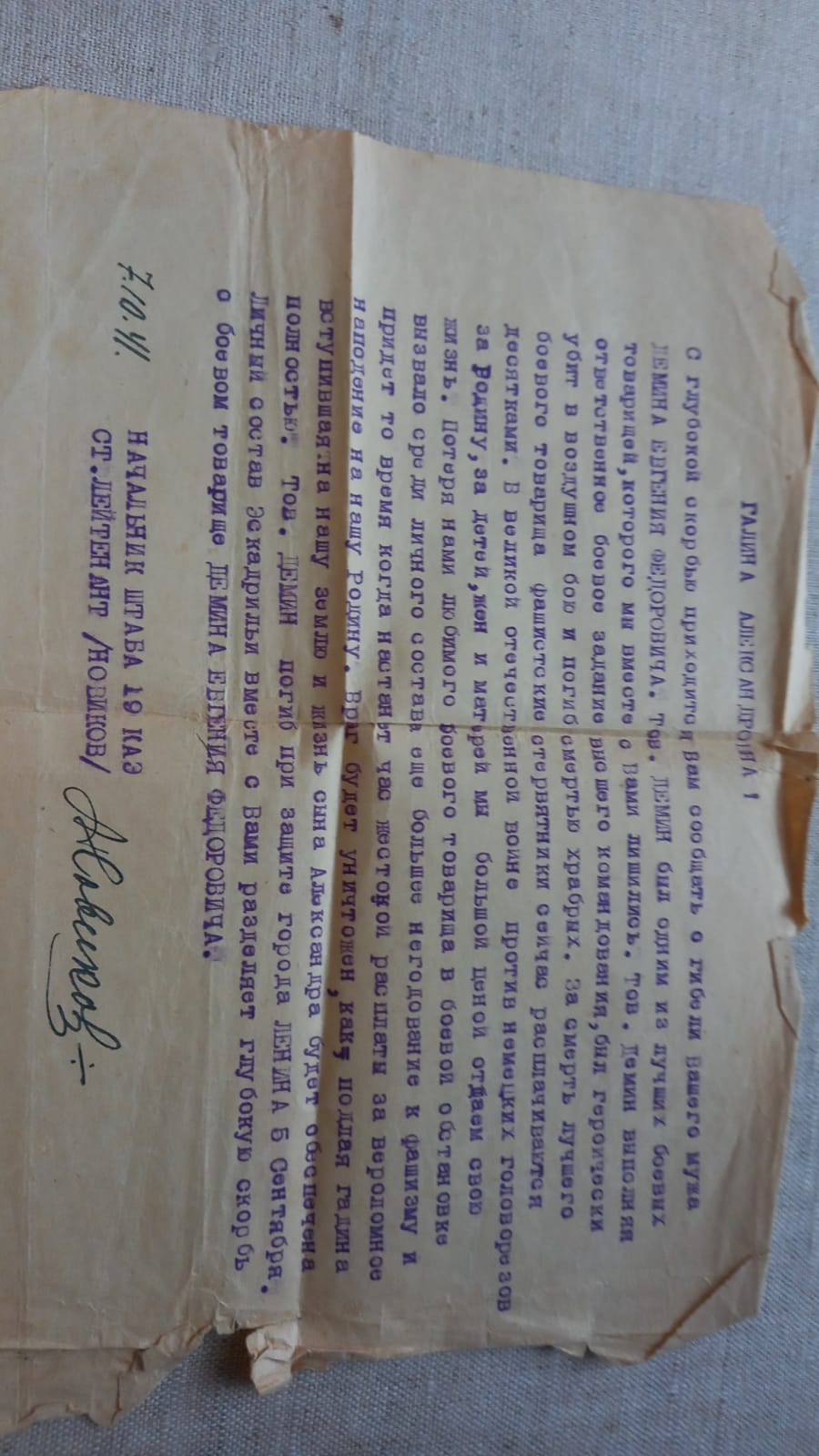 Погиб в бою. Захоронен станция Вырица. Награжден медалью «За боевые заслуги»