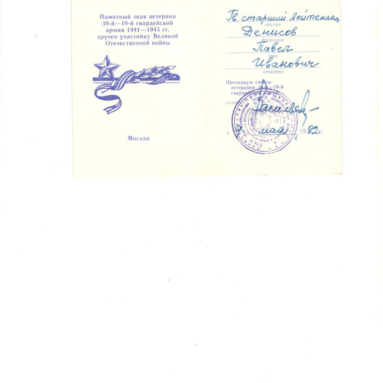 С июля 1942г призван в армию. Попал под Сталинград ,90-й Режицкий ордена Александра Невского гвардейский миномётный полк "Катюш",где принимал активное участие по освобождению Сталинграда в с.Цаца. Награждён за Оборону Сталинграда. С мая 1943 г-Брянский фронт ,в должности начальника хим.службы. В марте 1944 г 2ой Прибалтийский и Ленинградский фронты. 9 мая 1945 года встретил Победу в Кёнигсберге в должности ст. лейтенанта. Имел медаль "За отвагу" .медаль"За Победу над Германией",медаль "За боевые Заслуги" ,орден "Отечественной войны 2 ой степени". В мае 1966 года награждён орденом Ленина и Золотою Звездой Героя соц.труда. 24 мая 2008г умер и похоронен в г. Новополоцке. Белорусской республике. Является почётным гражданином Белоруссии.