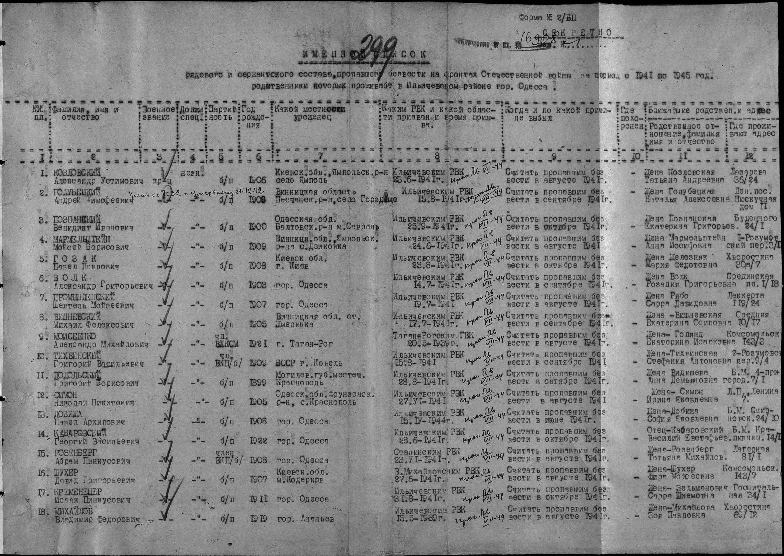 года был призван на фронт Ильичевским РВК (Ильичевский р-н г. Одессы). С 15