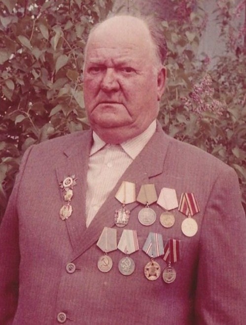 Родился в с.Белокатай Белокатайского района, Башкирия. Семья была зажиточная, большая: 8 братьев и сестёр. В 1933г. родители были сосланы в Кемеровскую область, г.Анжеро-Судженск. Жили в землянке.Отец работал на заводе. За хорошую работу был освобождён от ссылки. В д.Малодолгие семья переехала перед войной, в 1940г .Юноша выучился на тракториста, работал в колхозе «1 августа», был хорошим работником. 29.10.44 - в день 18-летия - получил повестку о призыве на фронт. Призван Петуховским РВК в октябре 1944г.. Военную присягу принял 05.11.1944. Учёба в Чебаркуле – и фронт. Военная специальность – телефонист. Задача телефонистов на передовой: обеспечивать бесперебойную связь со штабом фронта. В любую погоду, в любой военной обстановке: под огнём пуль, артобстрелом, бомбёжкой - выполнялась поставленная задача. Во время боя, артобстрела по нескольку раз приходилось устранять порывы. Дедушка вспоминал, как на его глазах тяжело ранило его напарника, и тот, превозмогая боль, собрав все силы, соединил обрыв проводов. Наравне с пехотой вступал в бой с фашистами. Воевал на 1 Белорусском фронте в составе 2 дивизиона 353(?) артполка 11 батарея связи. Принимал участие в форсировании рек Висла и Одер. Освобождал Варшаву. День Победы встретил в Берлине. Встречался с Г.К. Жуковым. Демобилизовался в 1946г. Год проходил службу в Германии. Советские солдаты помогали немцам налаживать послевоенную жизнь, поддерживать порядок. О военных событиях всегда вспоминал со слезами на глазах.