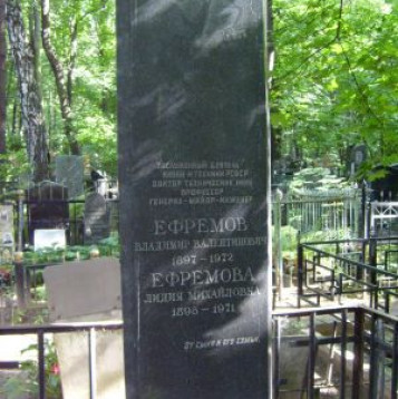 Ефремов Владимир Валентинович генерал-майор-инженер, заслуженный деятель науки и техники РСФСР, доктор технических наук, профессор. Родился в 1897 г. в с. Онуфриево (Рузский р-н, Московская обл.). Русский.В РККА с 1919 - 1921 г. и с 1932 г. Участник Гражданской войны в 1919 - 1921 гг. в составе 13-й армии. С марта 1937 г. - начальник кафедры восстановления боевых машин Военной академии механизации и моторизации.В июле - сентябре 1942 г. стажировался на Северо-Западном фронте. 1943 г. и 1945 г. - начальник кафедры восстановления танков Военной академии БТВ. Заслуженный деятель науки и техники РСФСР, доктор технических наук, профессор. Умер в декабре 1972 г. Воинские звания: военинженер 1-го ранга, бригадный инженер (27.01.1941), ген.-майор ИТС (07.02.1943)