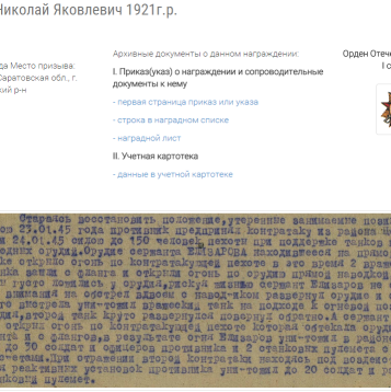 подвиги мой дед Елизаров Николай Яковлевич был награжден великой наградой: «Орденом