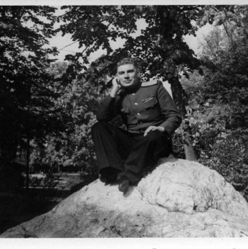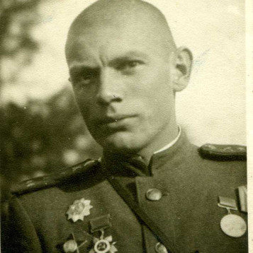 Родился 30 мая 1923 года на станции Выгоничи Брянской области. Национальность - русский. Вероисповедание - православный. Член КПСС с 1942 года. В 1940 году окончил 3-ю Московскую специальную артиллерийскую школу и был направлен как отличник в 3-е Ленинградское артиллерийское училище. 22 июня 1941 года мы занимались в летних лагерях в городе Луга хозяйственными работами. В 12 часов дня в училище была объявлена тревога. На общем построении начальник училища полковник Санько объявил нам о вероломном нападении гитлеровцев на нашу родину. Мы - курсанты - это уже почувствовали и сами, так как над нашими головами пролетали самолеты с крестами на крыльях в направлении Ленинграда. 26 июня 1941 года наш второй дивизион училища погрузили в эшелон, и мы двинулись по маршруту Псков - Остров - Шяуляй. По пути следования наш эшелон попал под бомбежку. По приказу командования дивизион своим ходом прибыл в город Остров. Здесь нас погрузили на железнодорожные платформы, и в первых числах июля мы прибыли к месту своей дислокации в город Луга. Так началась для меня Великая Отечественная война. В конце июля курсантам нашего дивизиона было присвоено воинское звание лейтенант. Всех нас, новоиспеченных лейтенантов, доставили в Ленинград в стены своего родного училища. Здесь нас полностью одели и обули во все командирское обмундирование, погрузили в эшелон, и мы отправились в столицу нашей родины. Ночью 22 июля наш эшелон был остановлен в районе города Химки, и мы стали свидетелями первого налета немецкой авиации на Москву. Потерь наш эшелон не имел, прибыли мы и разгрузились в городе Подольске. Здесь на базе пехотного и артиллерийского училища началось формирование нескольких артиллерийских полков резерва Главного командования (РГК). Я получил назначение командиром огневого взвода. Июль, август и сентябрь мы занимались обучением личного состава и готовились к грядущим боям. В конце сентября ввиду сложившейся тяжелой боевой обстановки наш полк получил приказ и был направлен в район Серпухов - Таруса, где шли тяжелые бои. Наш полк своим огнем тяжелых артиллерийских орудий (152-мм. гаубицы-пушки) наносил большой урон наступающим немецким войскам. К несчастью, 30 октября 1941 года в районе города Серпухов наша батарея попала под бомбежку, и я получил осколочное ранение правой кисти руки. Ранение было легким, поэтому я убыл в госпиталь 30.10.1941 в город Ногинск, а уже 28.11.1941 вернулся к новому месту службы в районе города Кубинка, где занимала оборону прославленная Краснознаменная 82-я мотострелковая дивизия, прибывшая из Монголии. В артполку этой дивизии я получил назначение на должность заместителя командира батареи. Командиром нашего дивизиона был майор В.Д. Морозов. 10 января 1942 года наша дивизия начала боевые действия вдоль Минского и Можайского шоссе в направлении Дорохово - Можайск. Двадцатого января 1942 года Можайск был освобожден. Я принимал участие в этих боях в должности командира батареи. 8 февраля 1942 года на дальних подступах к городу Гжатск был тяжело ранен разрывной пулей в правое бедро. Проходил лечение в госпитале, город Москва. Вернулся в часть 22.06.1942. После выписки из госпиталя получил назначение на должность начальника разведки артполка мотострелковой бригады. В боях в районе Погорелое Городище был опять ранен пулей в левое предплечье и был отправлен в госпитал