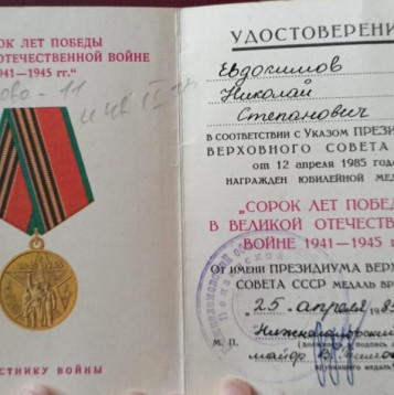 Евдокимов Николай Степанович родился в городе Нижний Ломов Пензенской области 19.11.1925 года.