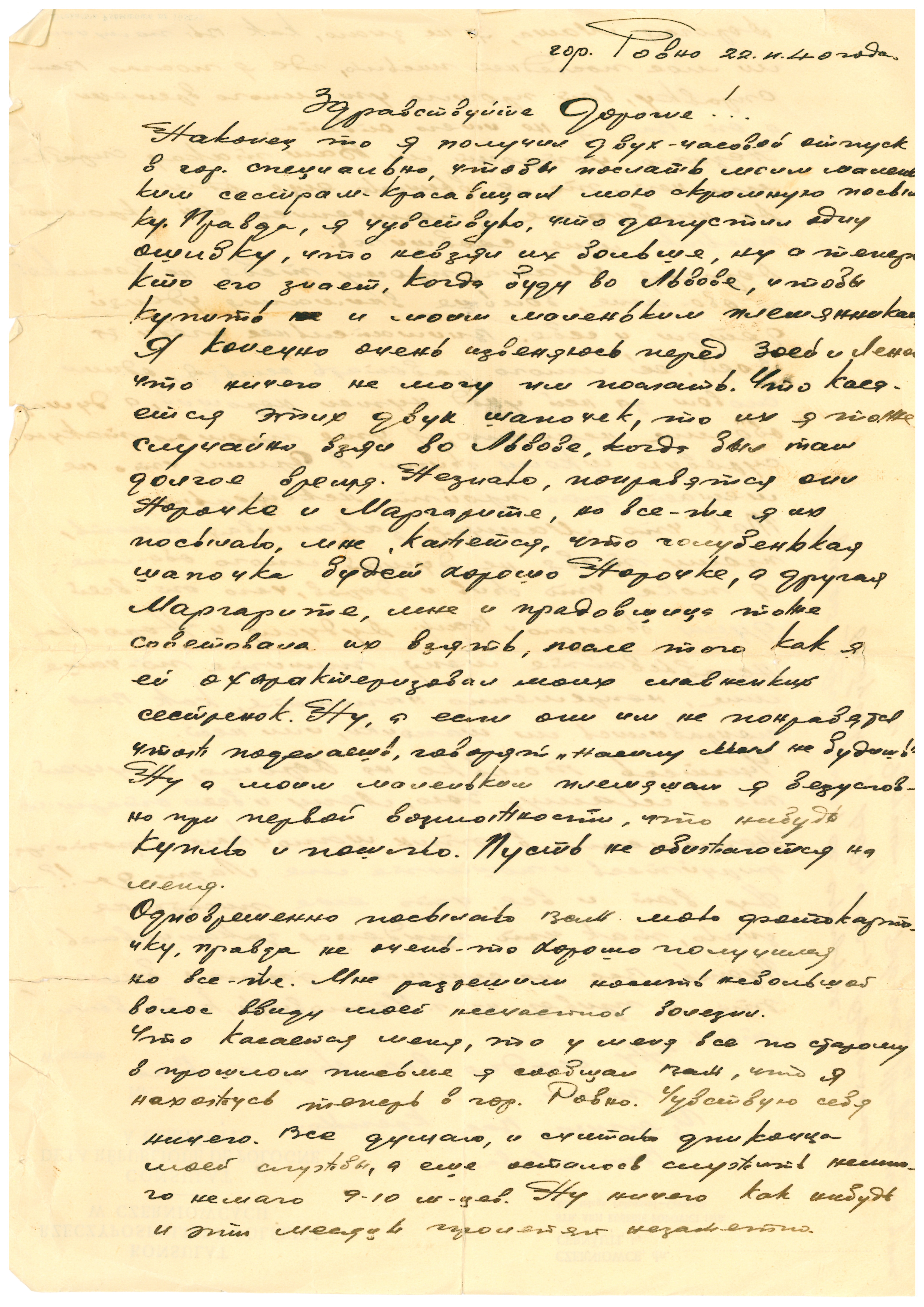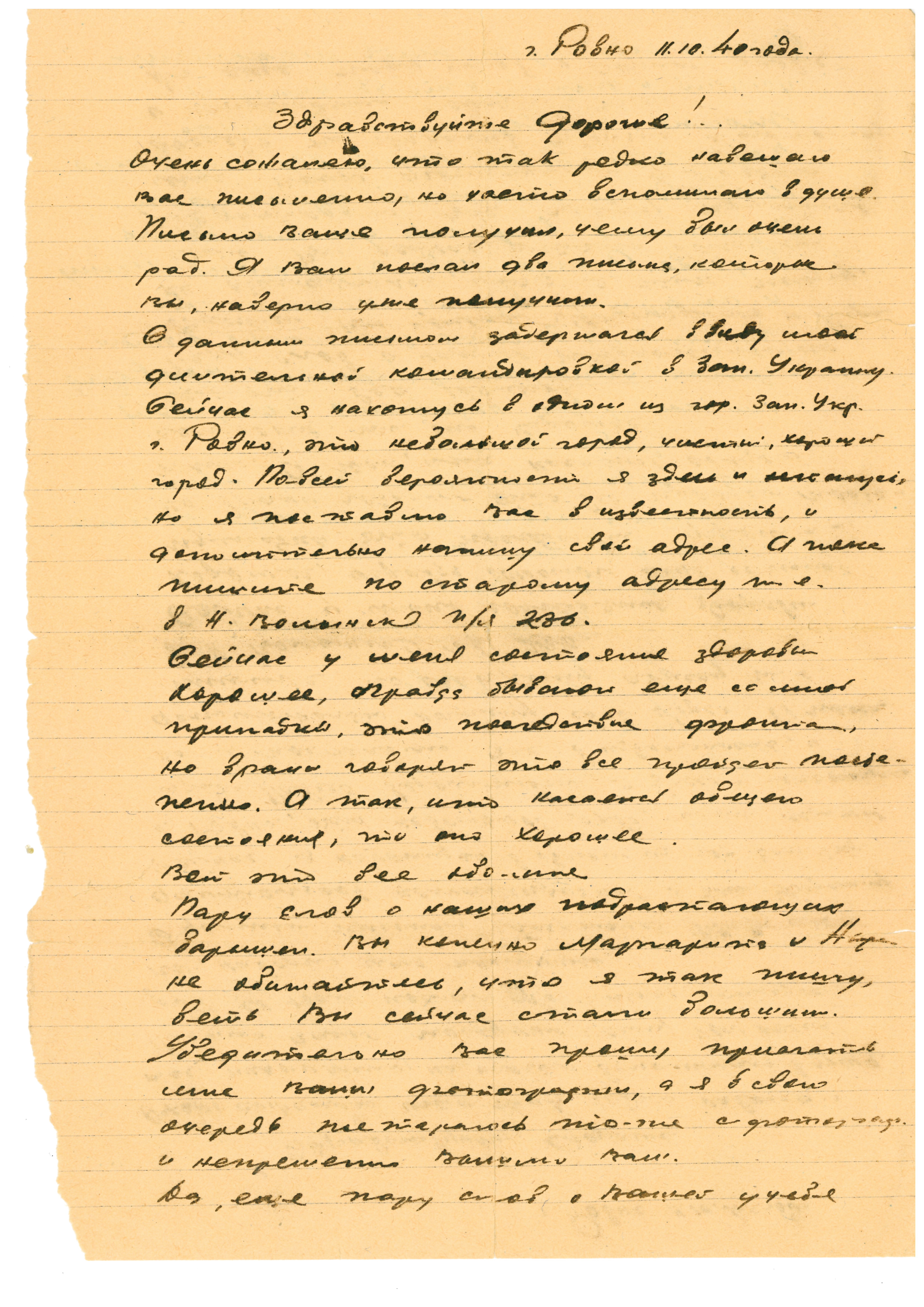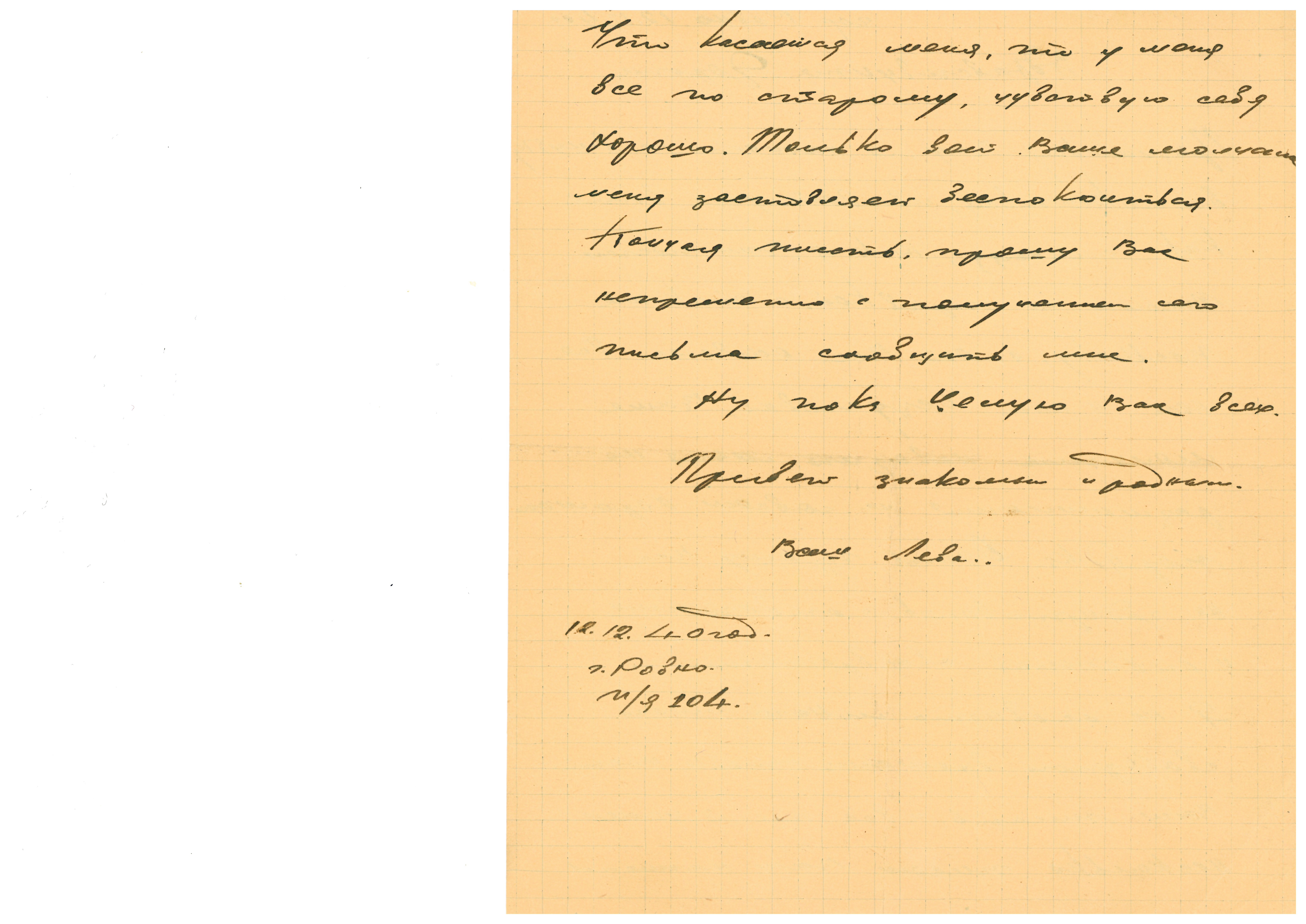 Киев, последнее письмо датировано 28.08.1941 г. Позже под Ровной были найдены