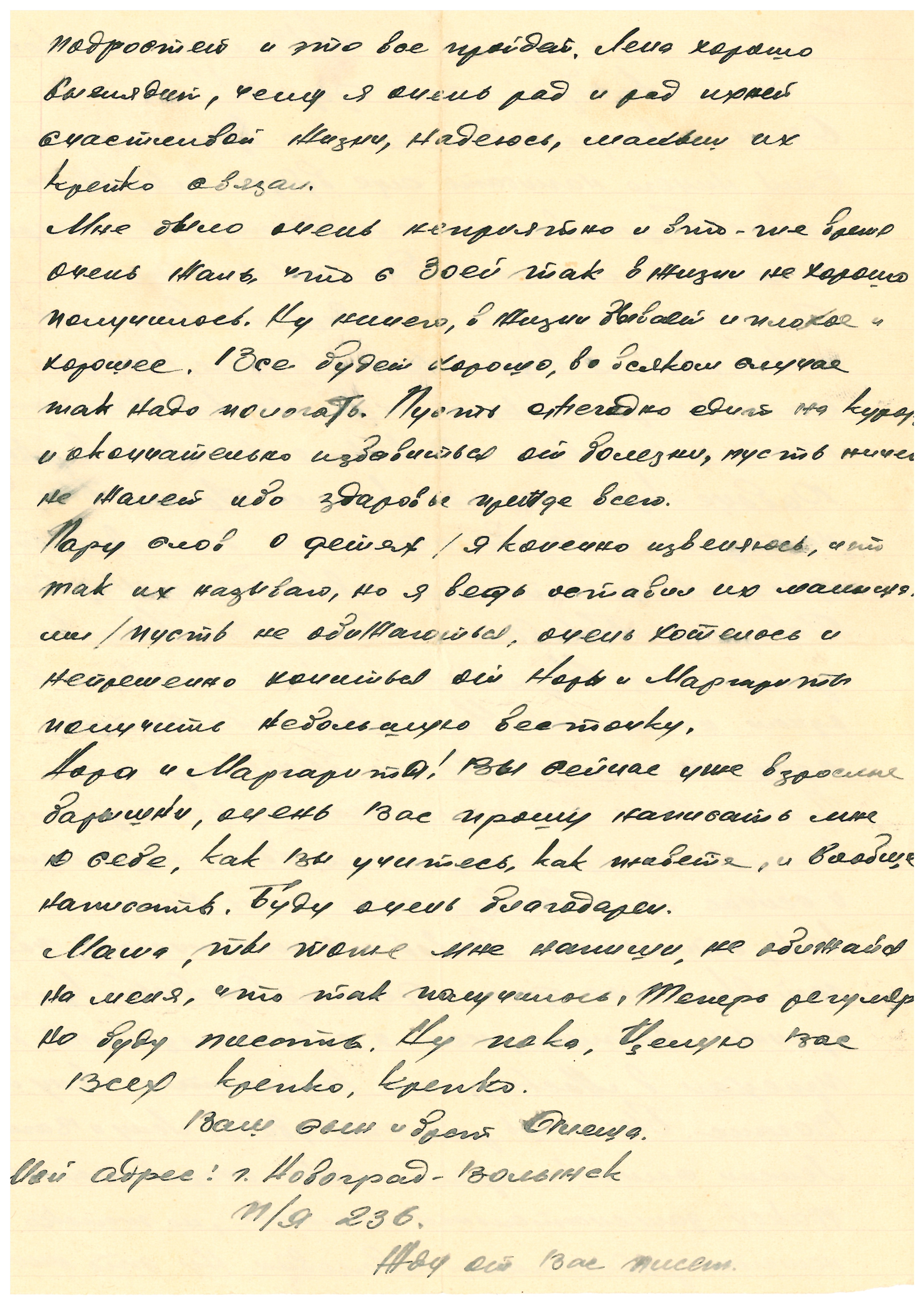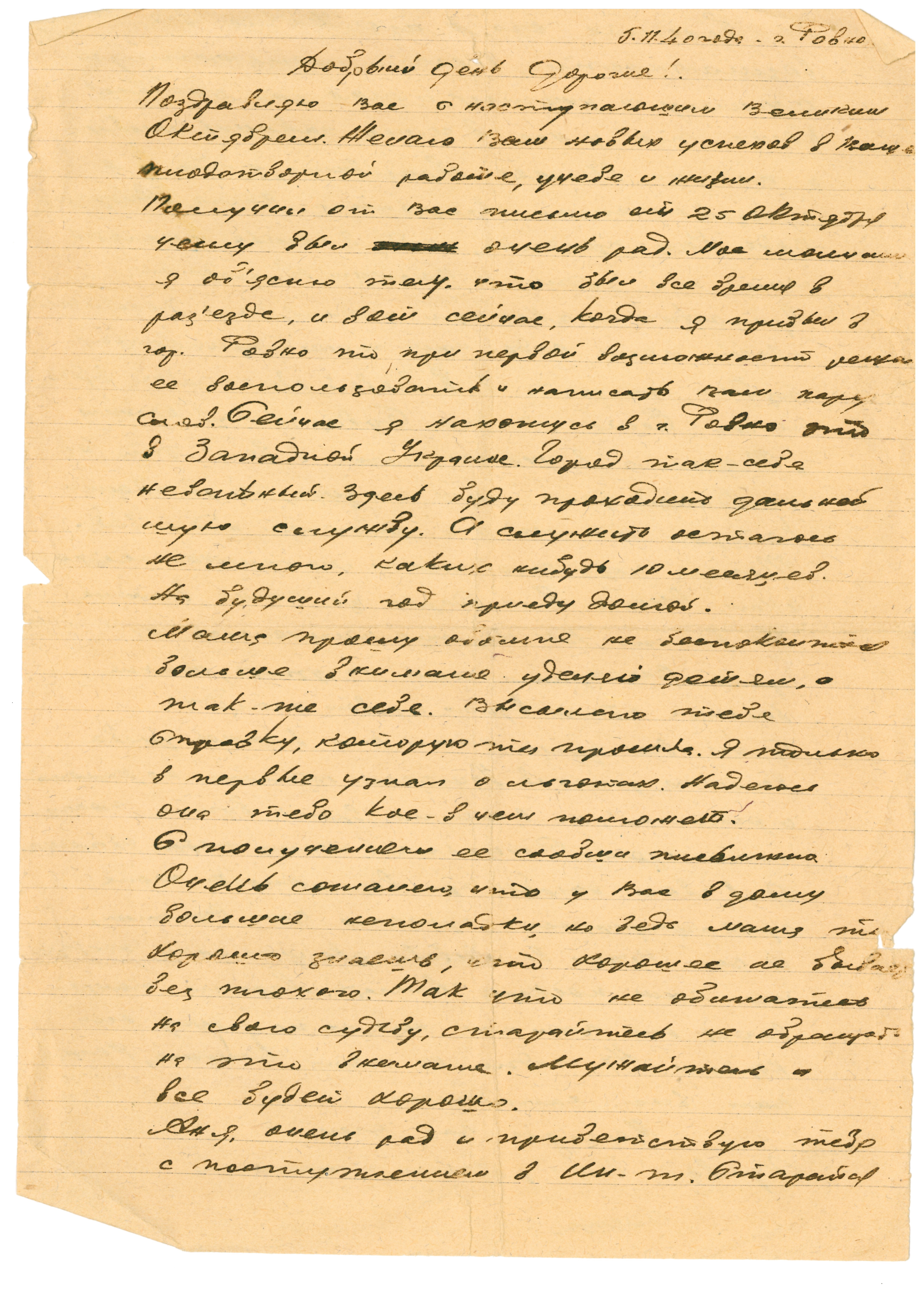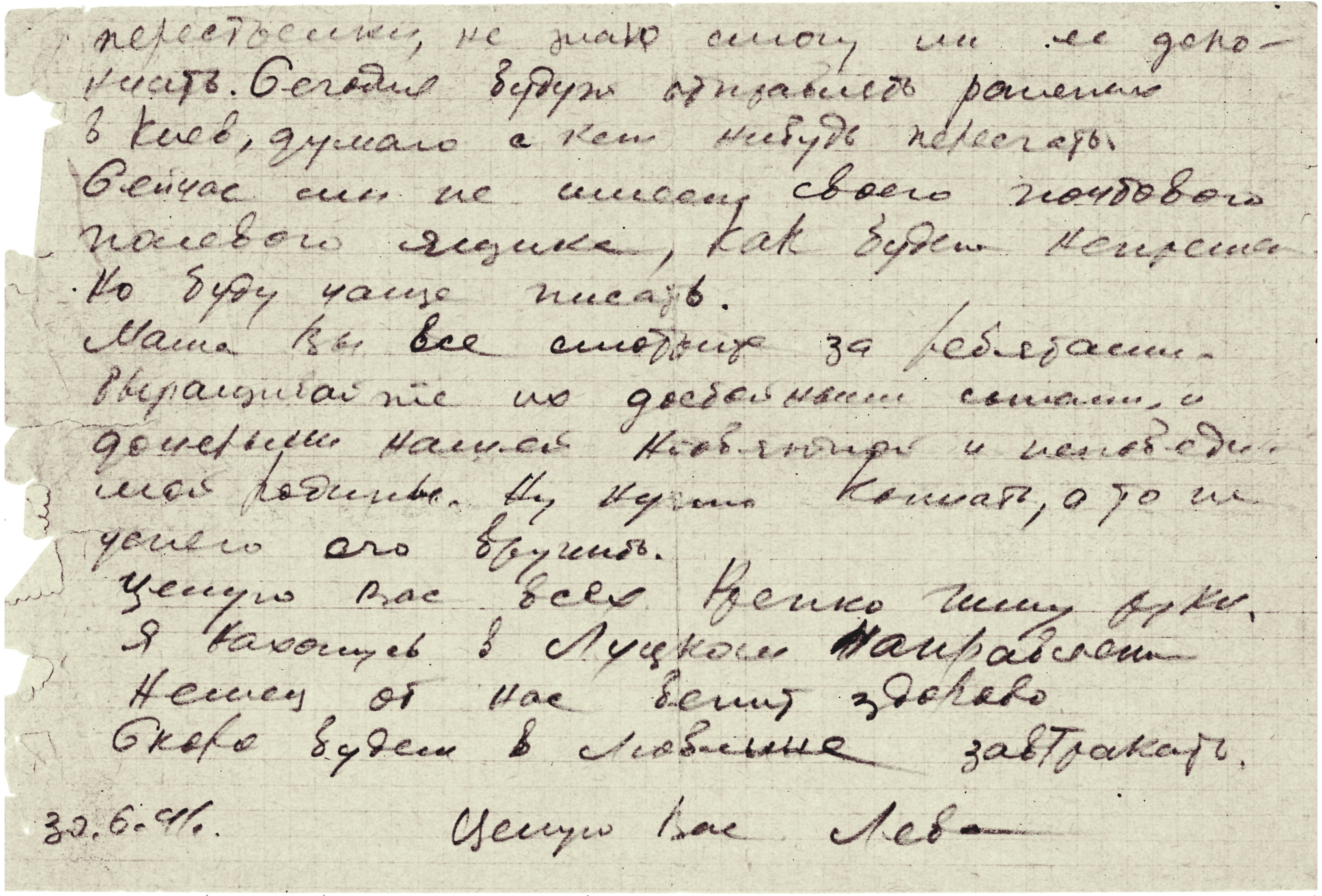 Киев, последнее письмо датировано 28.08.1941 г. Позже под Ровной были найдены