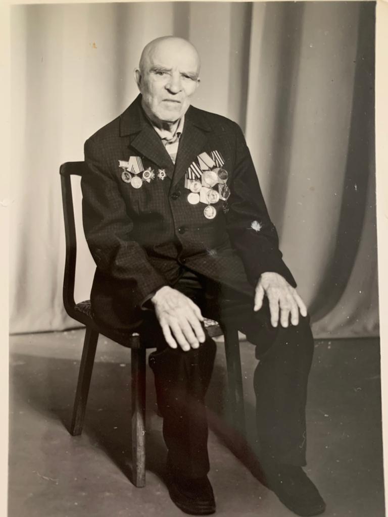 Окончил Солнечногорское военное пехотное училище. Дед был призван стрелком в июле 1941 года Молотовским РВК Молотовского района Москвы. Участвовал в битве за Москву. В ожесточённых боях в ноябре 1941 года в Волоколамском районе в деревне Ремягино пропал без вести. Был в плену в Вязьме, Можайске, Смоленске. Был в партизанах на Смоленщине. Был командиром отделения 1-го стрелкового батальона, старшим сержантом 391 стрелкового полка 170 КСД. 19.10.1944 г. участвовал в боях при расширении плацдарма на реке Нарев (Польша), также участвовал на подступах к городу Млава (Польша). Был контужен, имел ранение. Участвовал во взятие Кёнигсберга. Совершил три подвига - 19.10.1944 г., 18.01.1945 г., 08.03.1945 г. За эти подвиги был награждён медалью "За отвагу", "За взятие Кёнигсберга", "За победу над Германией". Прошёл всю войну и вернулся домой в звании старшего сержанта в сентябре 1945 г. Вечная память! Спасибо тебе, дед!
