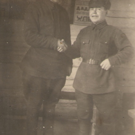 Итак два брата дрались за царя и против царя. Потом они подружились по-братски и Василий убеждал Данилу, что б быть верным и не позорить свой род. А через несколько дней пришел урядник и еще 2 солдата и Данилу забрали. Хорошо помню, как плакала вся семья. Дважды проверили документы Василия, но он кроме документов показал затылок, где пуля сделала светлую от волоса дорожку и раненую ногу. Когда забирали Данилу, бабушка бросилась к сыну, обняла, завопила, и запричитала. У двора и во дворе народа собралось пол деревни. Ворота и калитка отворены. Дед стоял между двух воротных столбов как могучий дуб. Не знаю, то ли плакал, то ли терпел, утаив зло. Когда урядник дернул старуху от сына, Василий молниеносно схватил его за грудки и приподнял. Во дворе рев и суматоха. Все простились с Данилой. А Василий погрозил пальцем уряднику и сказал: «Если хоть пальцем тронете Данилу, пеняйте на себя!..». А в феврале Месяце 1917 года у Василия отпуск кончился и он тоже уехал в свою часть, город Вильнюс, через Москву.