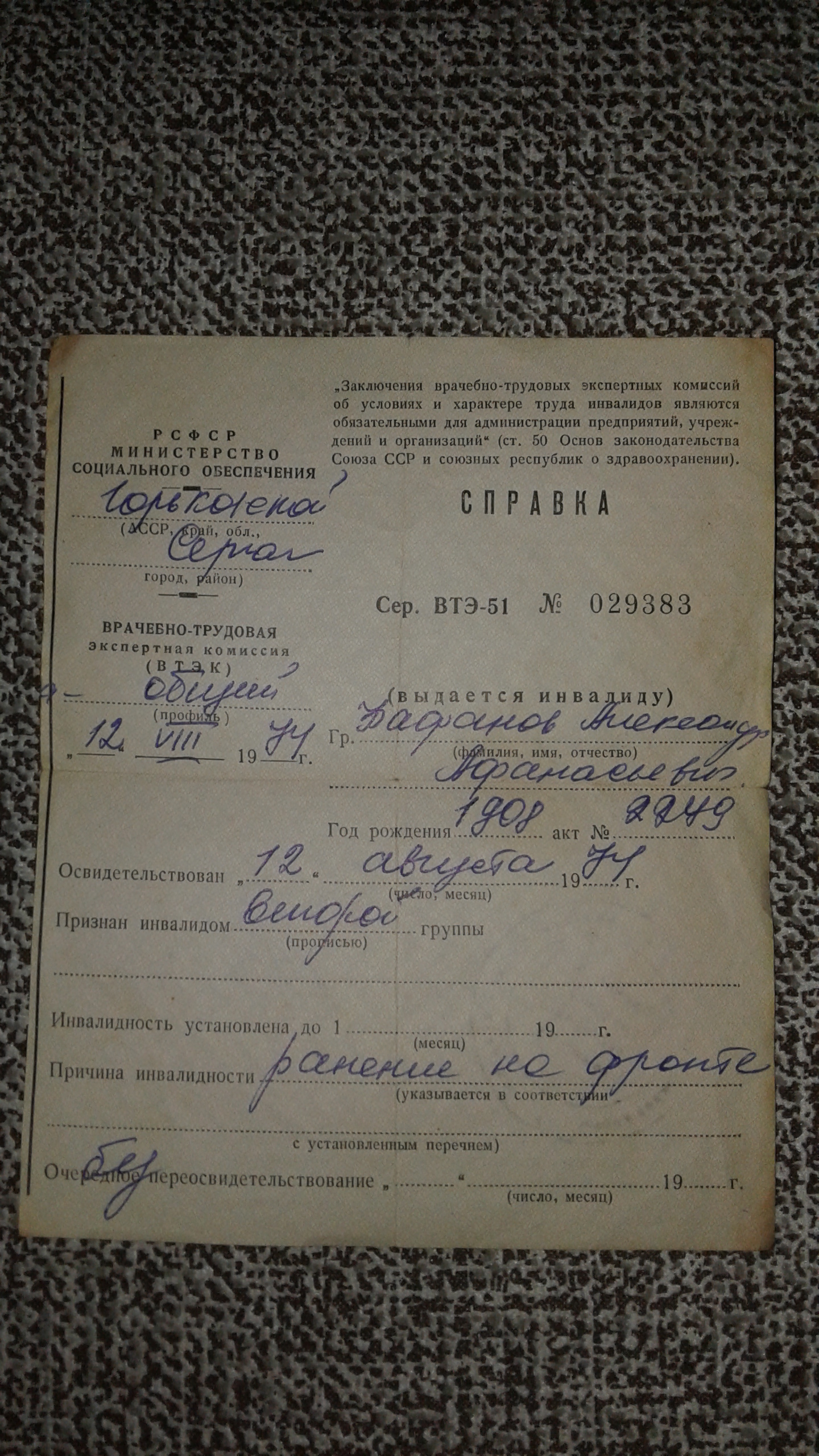 был на фронте. С войны он вернулся инвалидом. Я не застала его живым. Мама